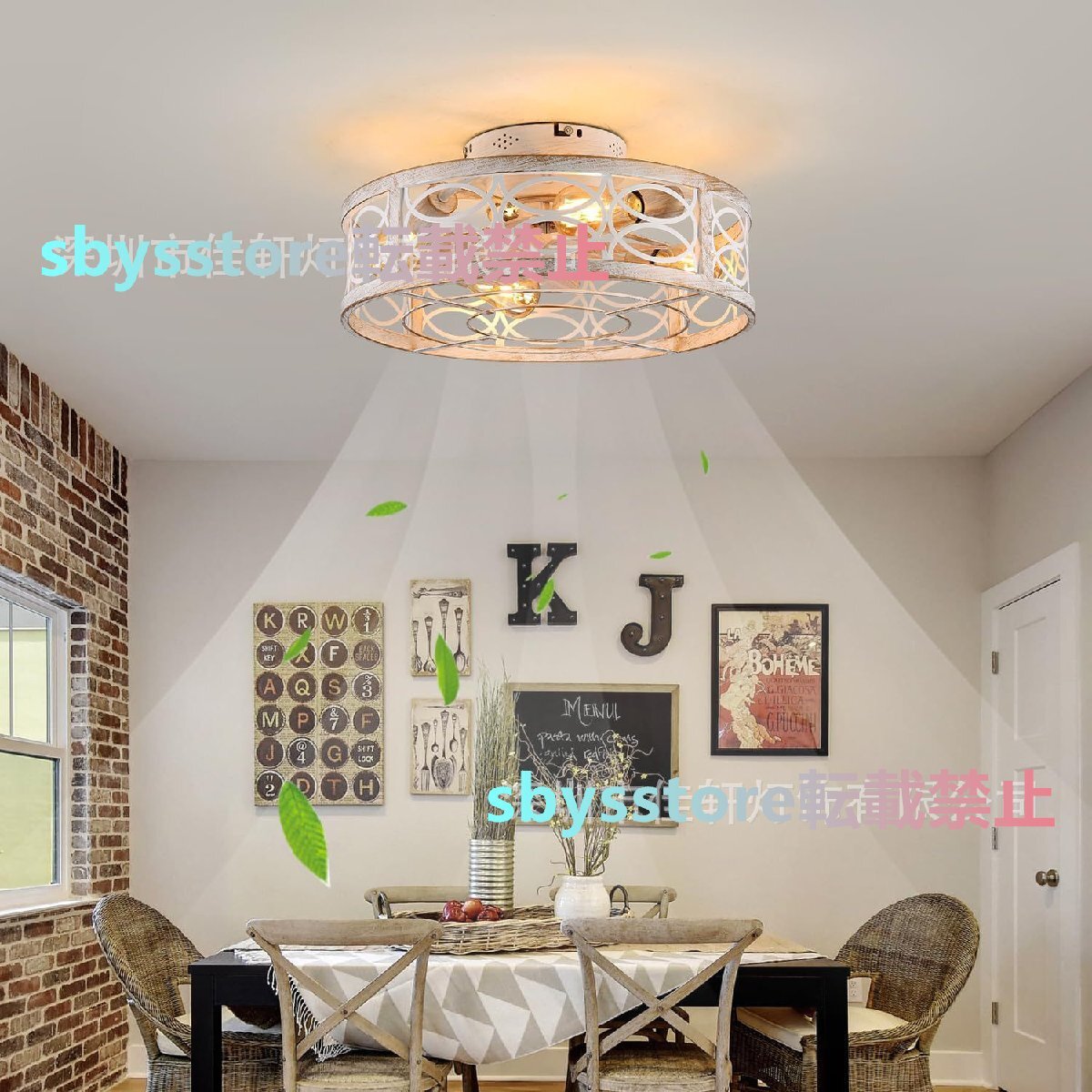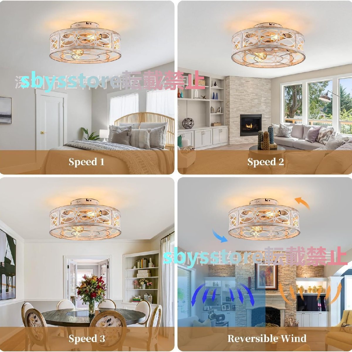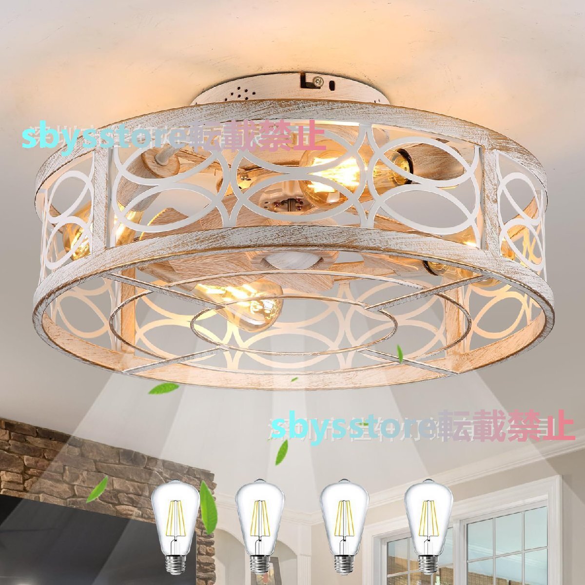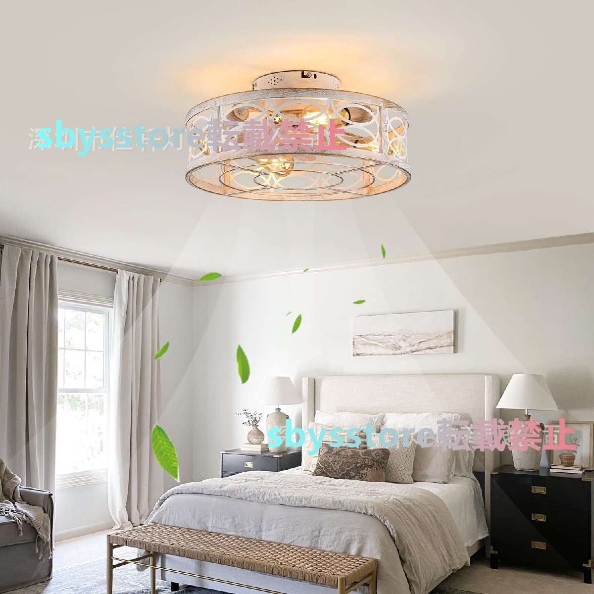 2025年新作 寝室用アメリカンレトロシーリングファンライト 静音ファン付き家庭用照明