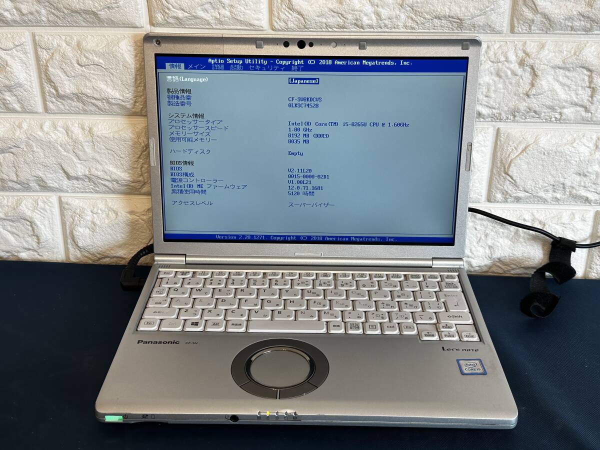 【ジャンク品】Panasonic Let's note CF-SV8KDCVS /Core i5 8265U/8GBメモリ ① | ||