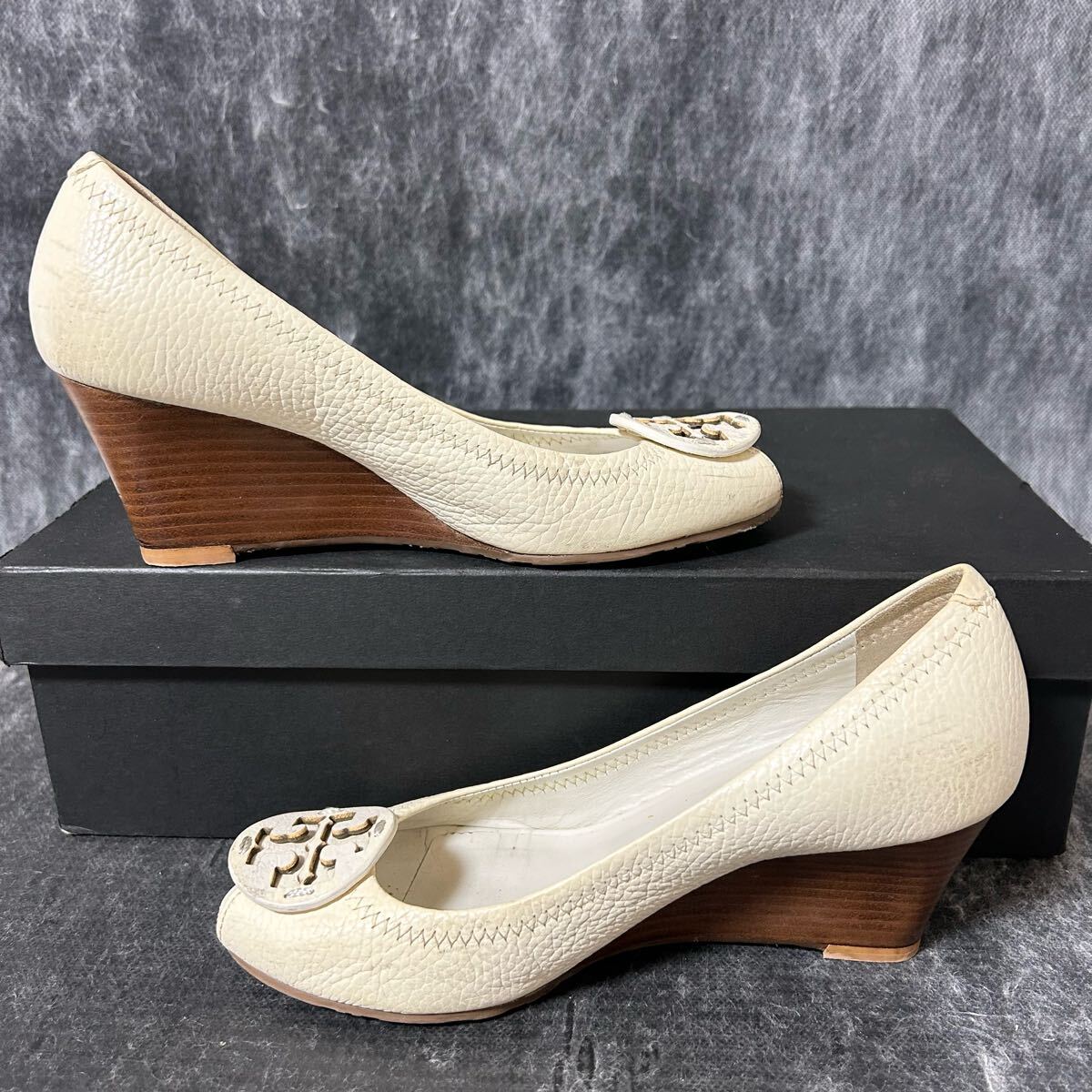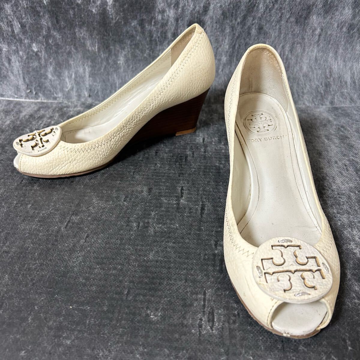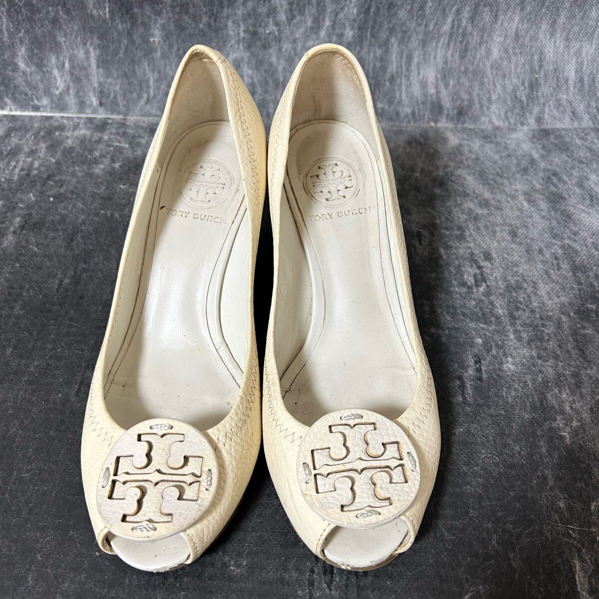 TORY BURCH トリーバーチ ウェッジパンプス オープントゥ パンプス レザー 6 23cm相当 アイボリー *BQ