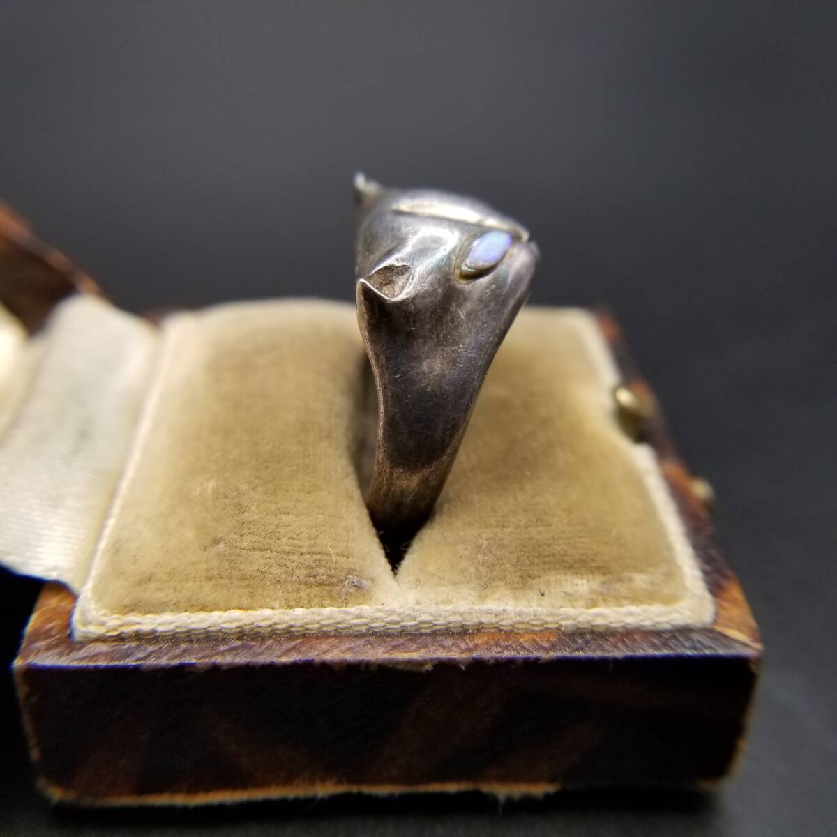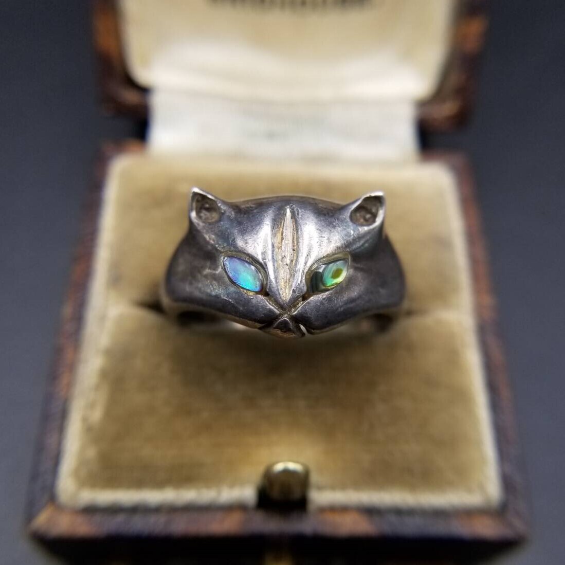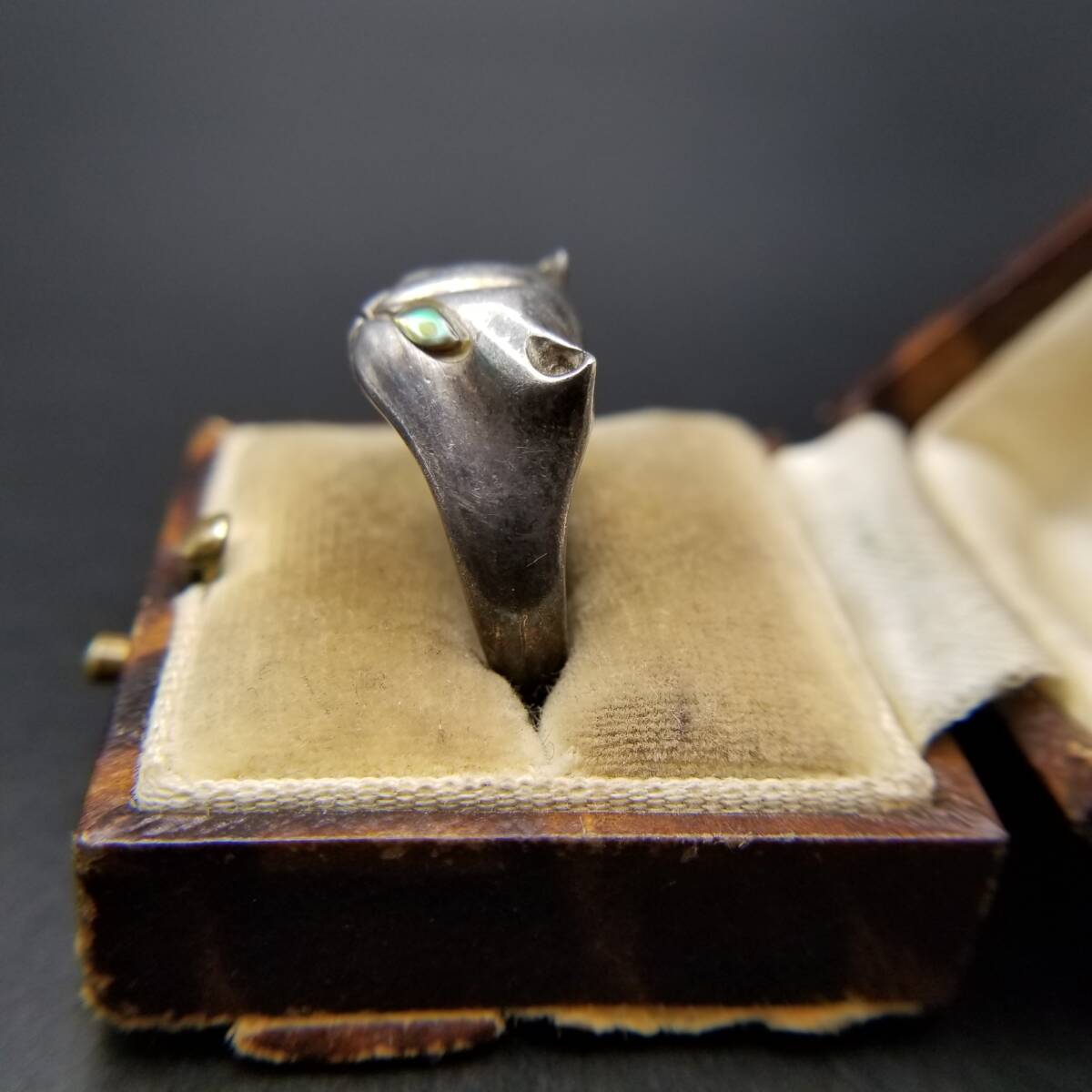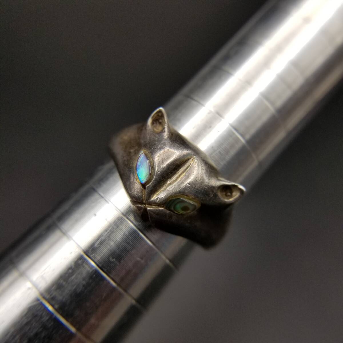キャットマスク 猫の顔 オーロラアイ 925 シルバー ヴィンテージ リング 銀 指輪 Cat Face 個性派ジュエリー キュート Y24-O