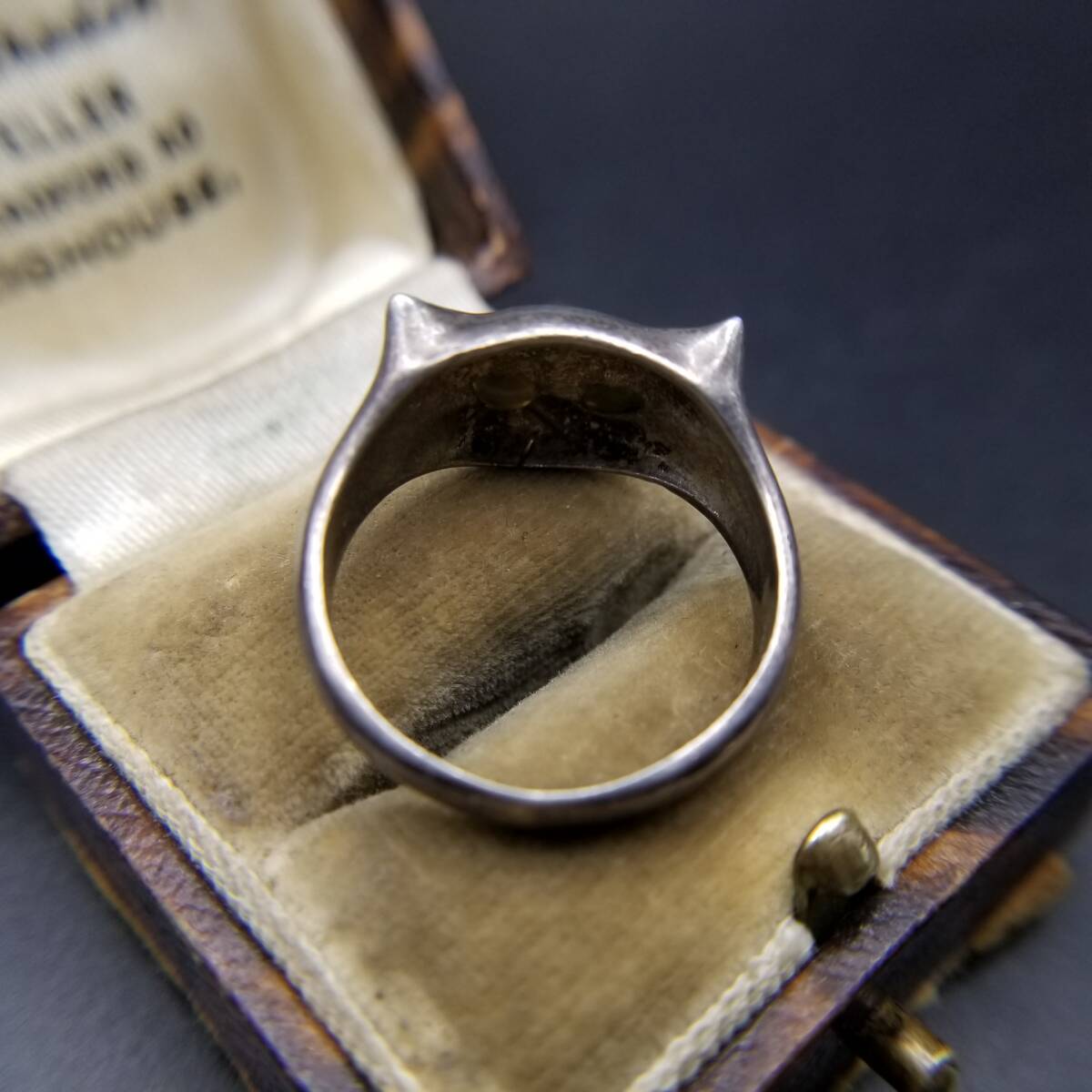 キャットマスク 猫の顔 オーロラアイ 925 シルバー ヴィンテージ リング 銀 指輪 Cat Face 個性派ジュエリー キュート Y24-O