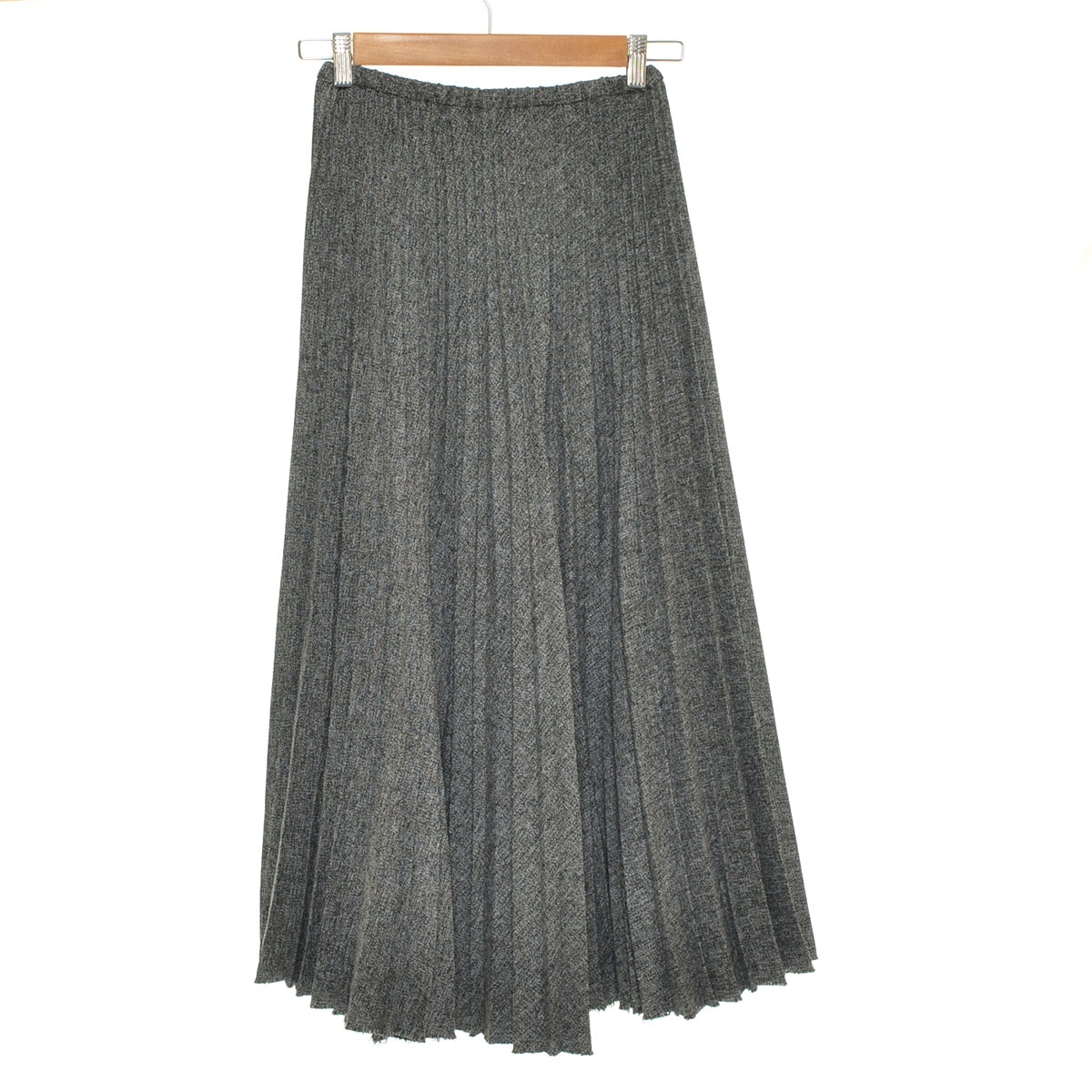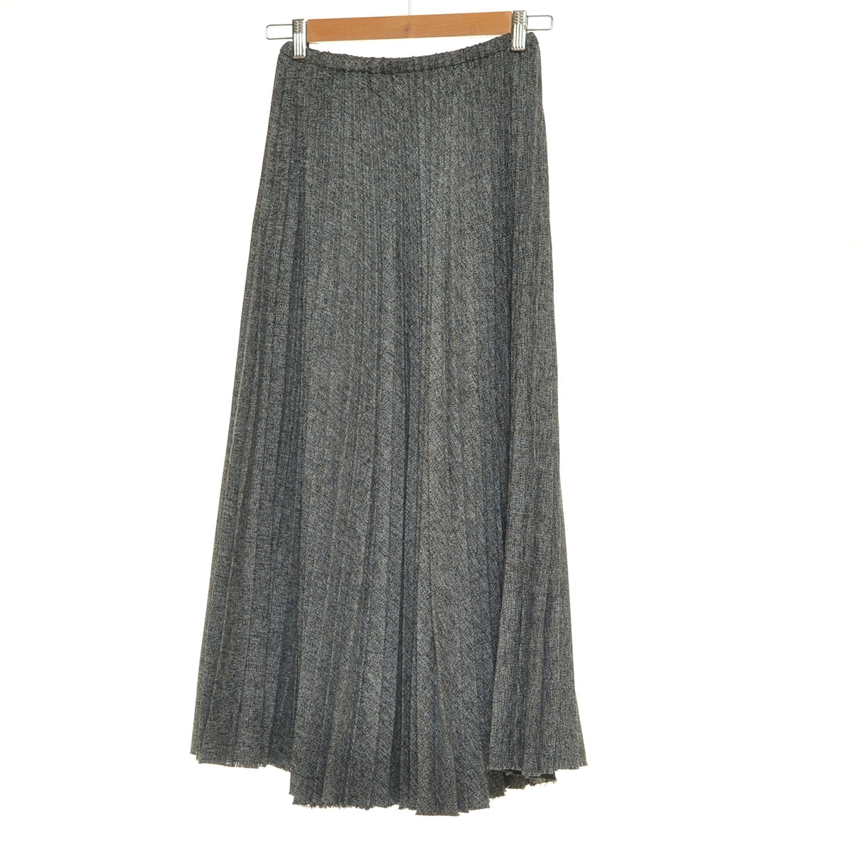 ■559568 Mila Owen ミラオーウェン ロングスカート ●後ろゴムランダムプリーツLSK 09WFS205215 サイズ0 ツイード 20AW レディース グレー