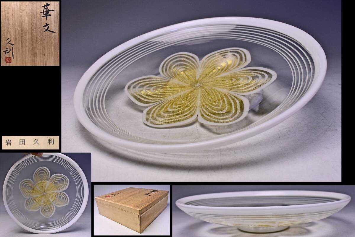 岩田久利 ★ 華文 ガラス 皿 ★ 共箱 ★ 父: 岩田藤七 ★ 飾っても使っても存在感のある逸品 ★ 硝子 ★ 8寸 ★