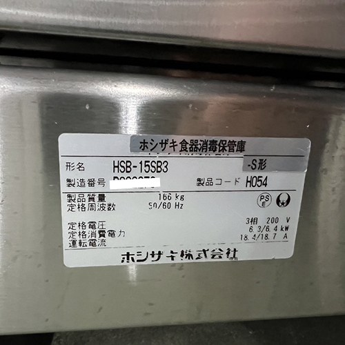 【業界最長1年保証】消毒保管庫 ホシザキ HSB-15SB3 業務用 中古/送料別途見積