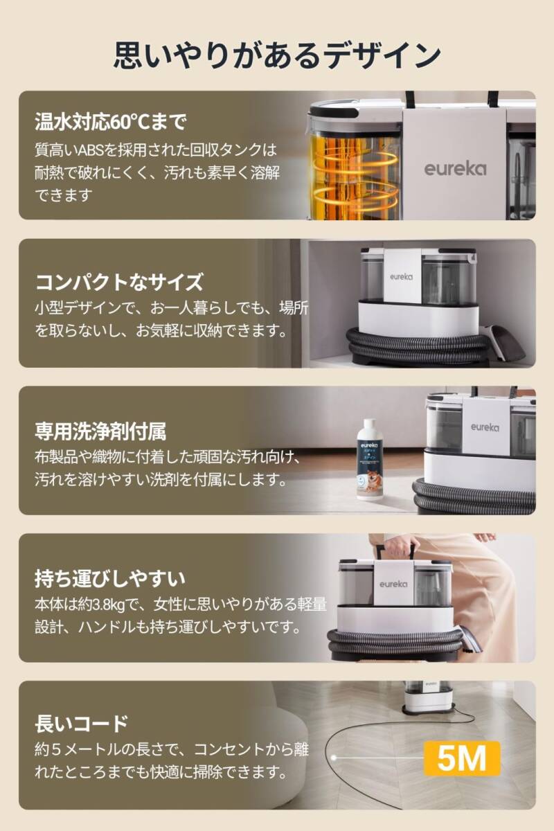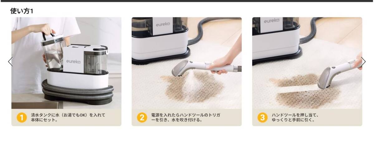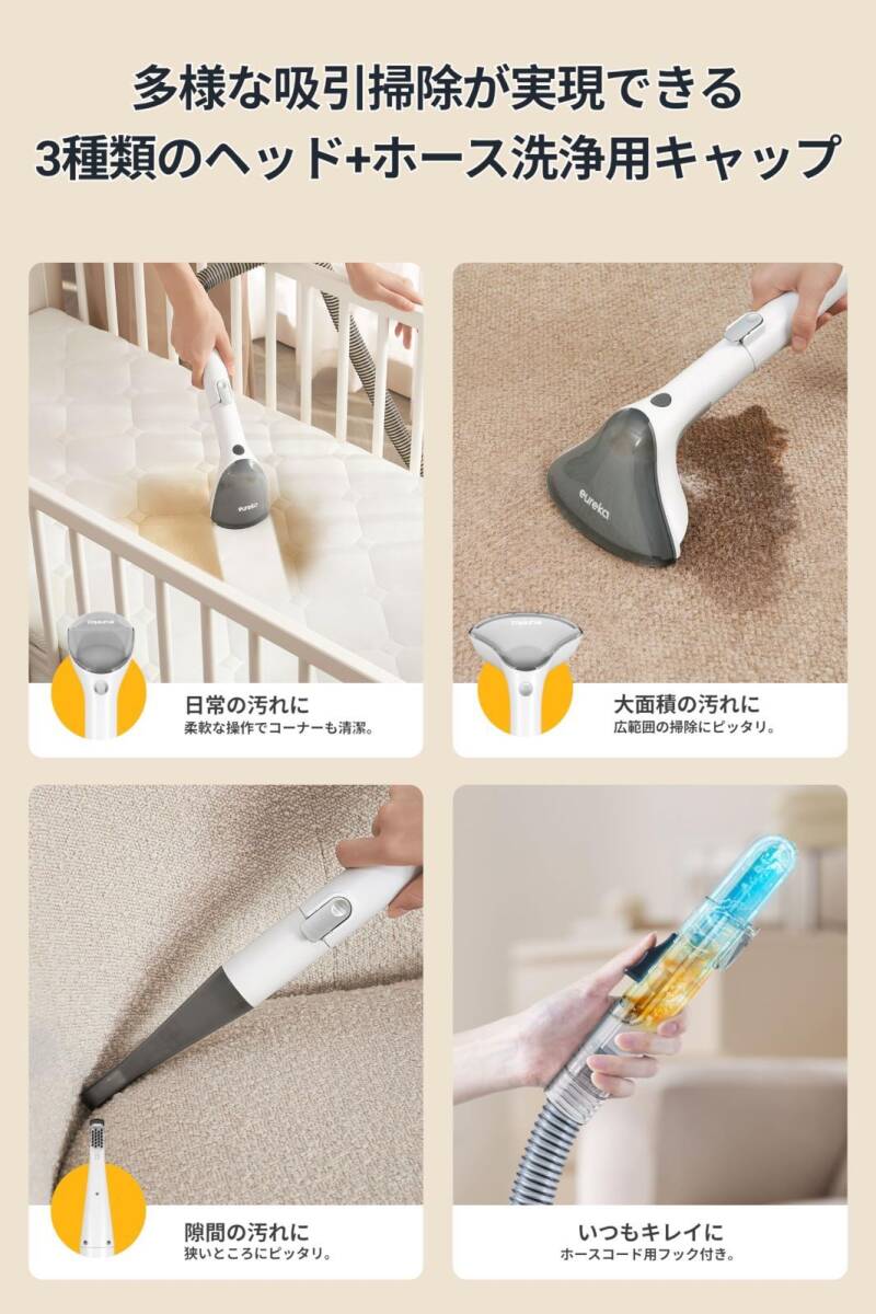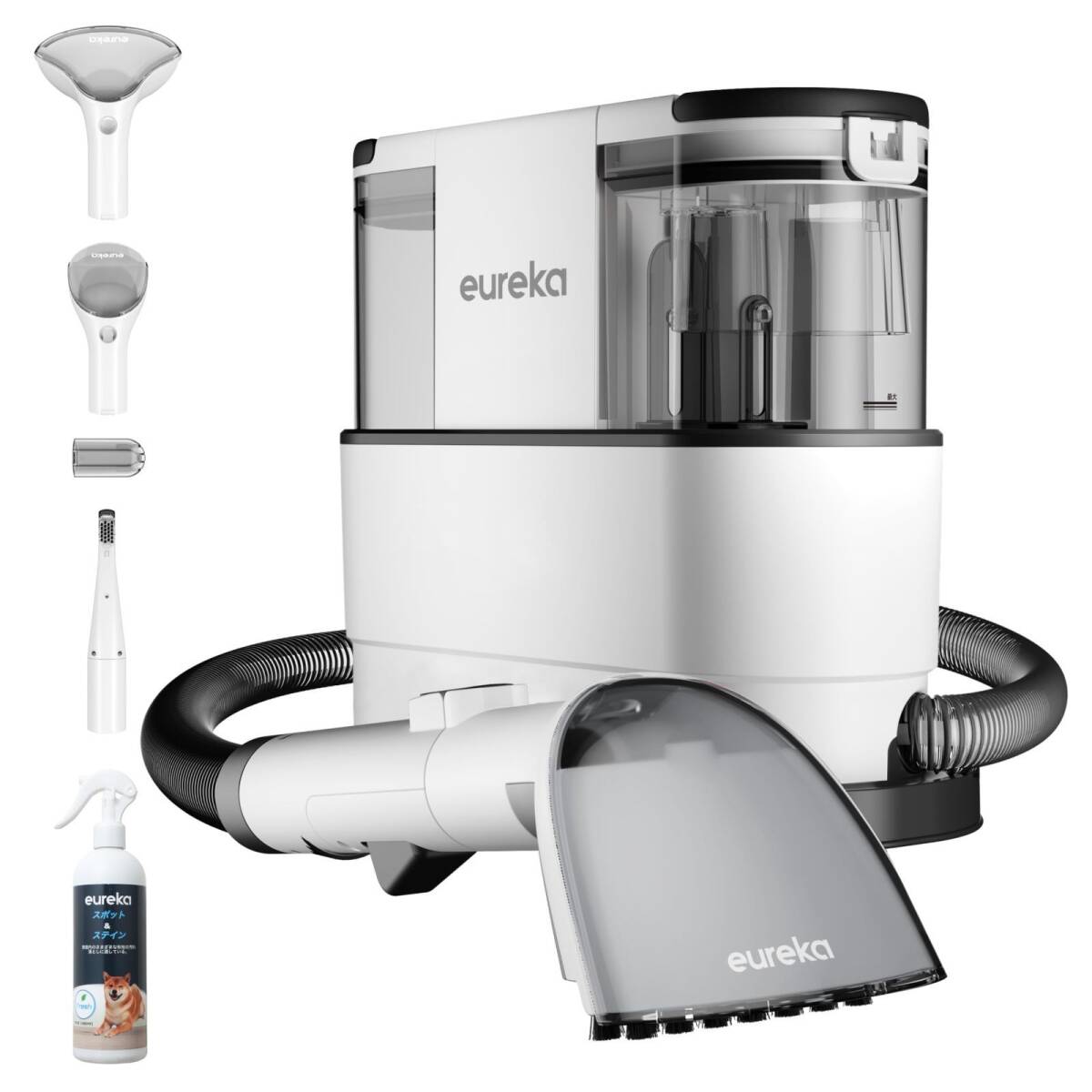 EUREKA カーペットクリーナー NEY100 絨毯洗浄 400W強力吸引 自動洗浄 車 シート 掃除 スチームクリーナー ソファ 車内掃除機 乾湿両用 布洗浄機 お湯対応可能 洗浄剤付属 三つブラシ