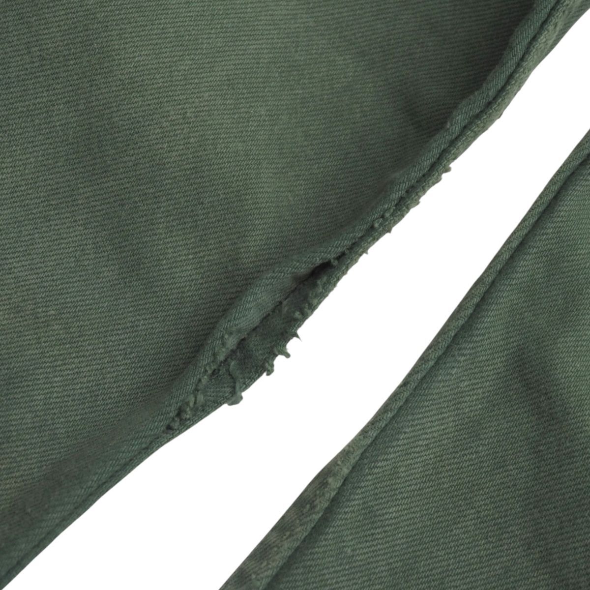 【コンディション詳細】 現状着用に支障ございませんが、左腿下辺りに一部ステッチ抜け(7枚目参照)が見られますのでご了承の上ご入札をお願いいたします。 ポケット裏地に薄汚れ、股下、裾にやや擦り切れ、全体に淡い褪色、薄汚れ等多少の着用感が見られますものの、ユーズド品では今後も十分にご愛用いただけるコンディションです。 |