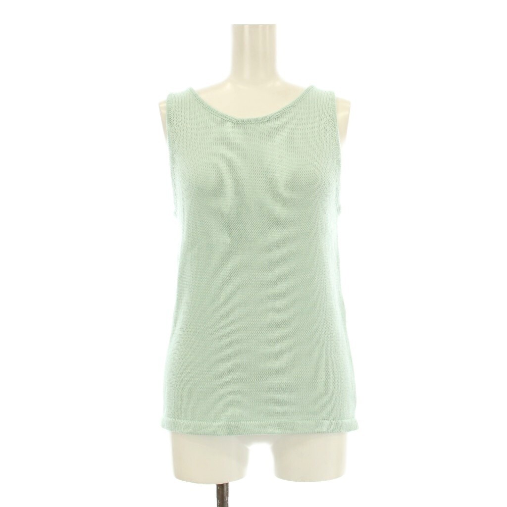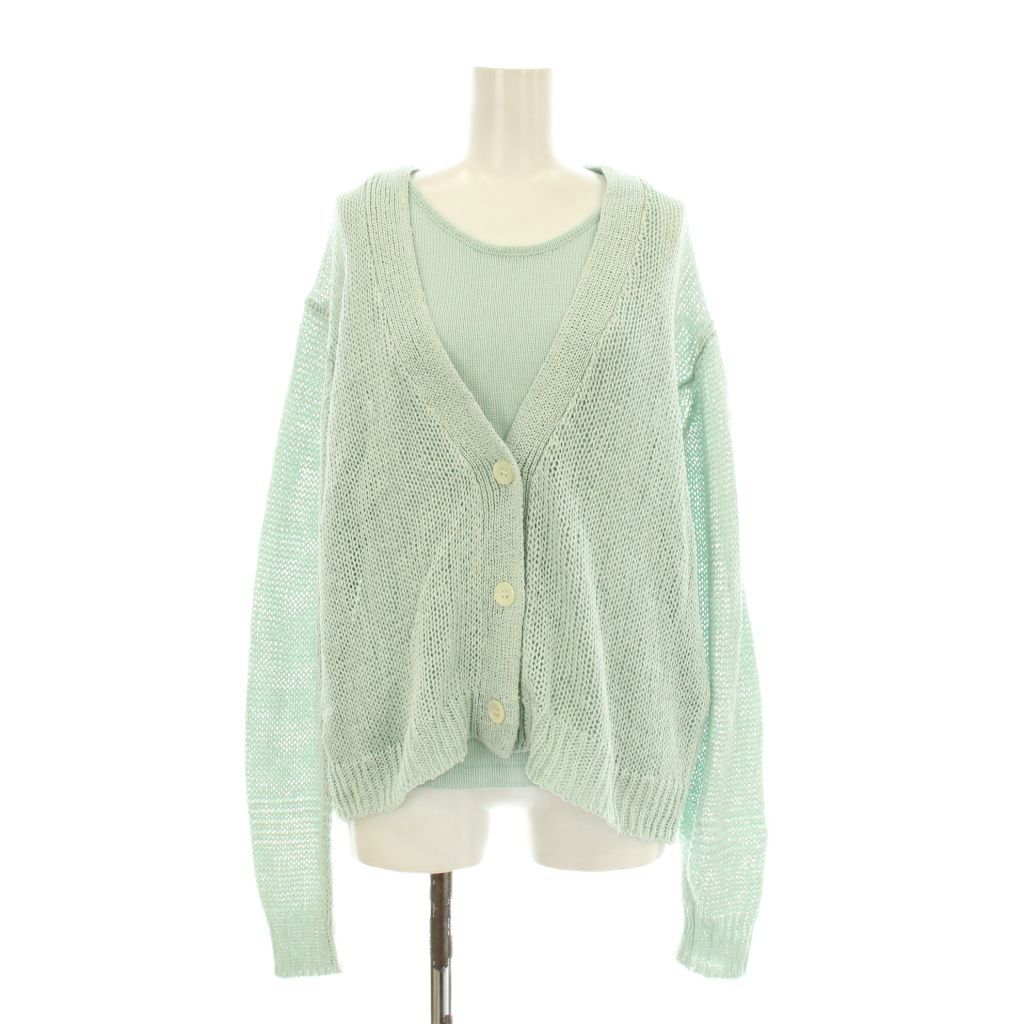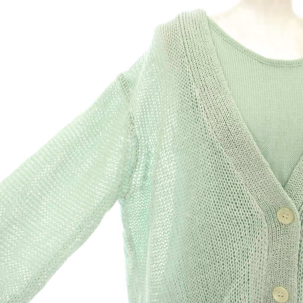 カオス シェルボタン ピールコットン ニットセット アンサンブル カーディガン 長袖 カットソー ノースリーブ ミントグリーン