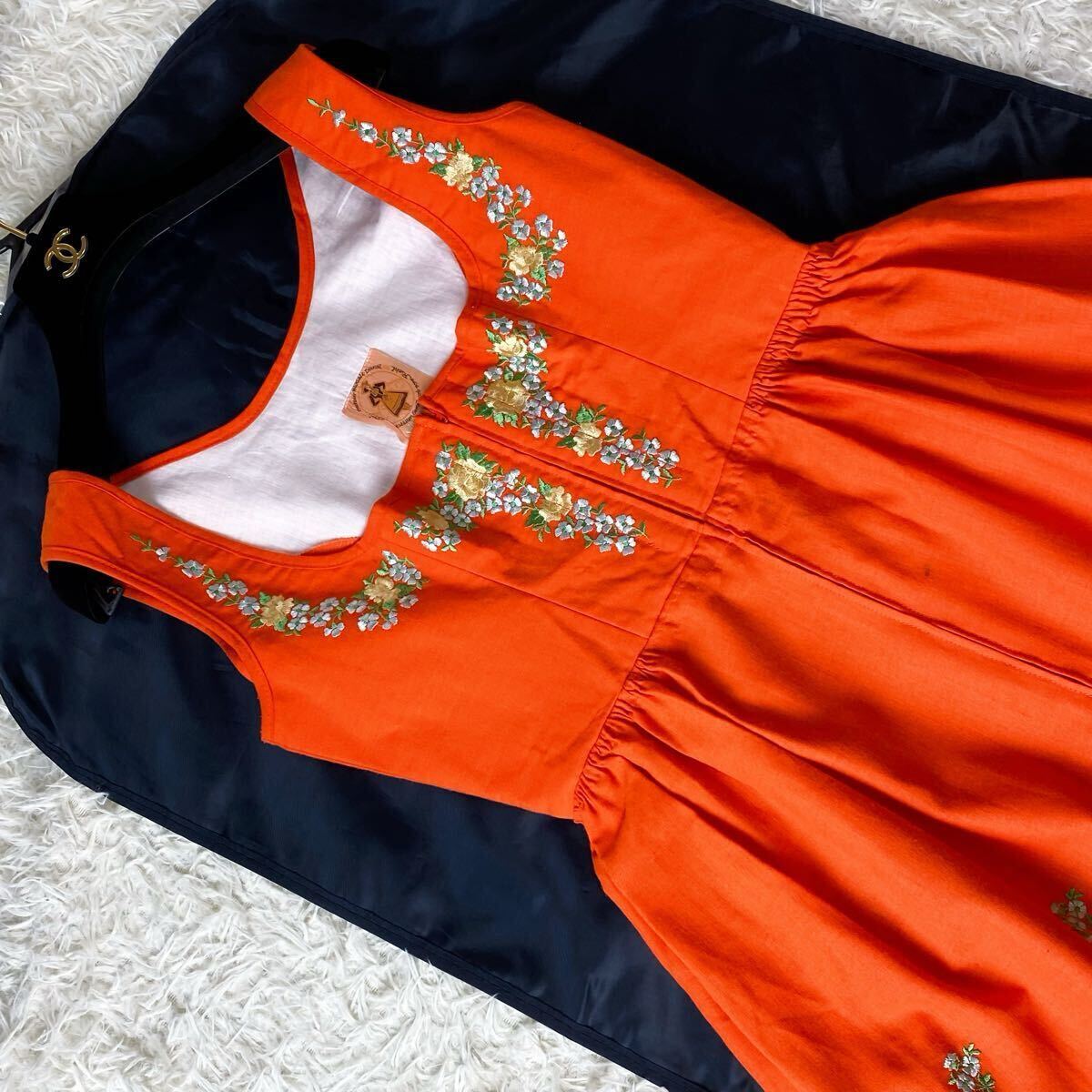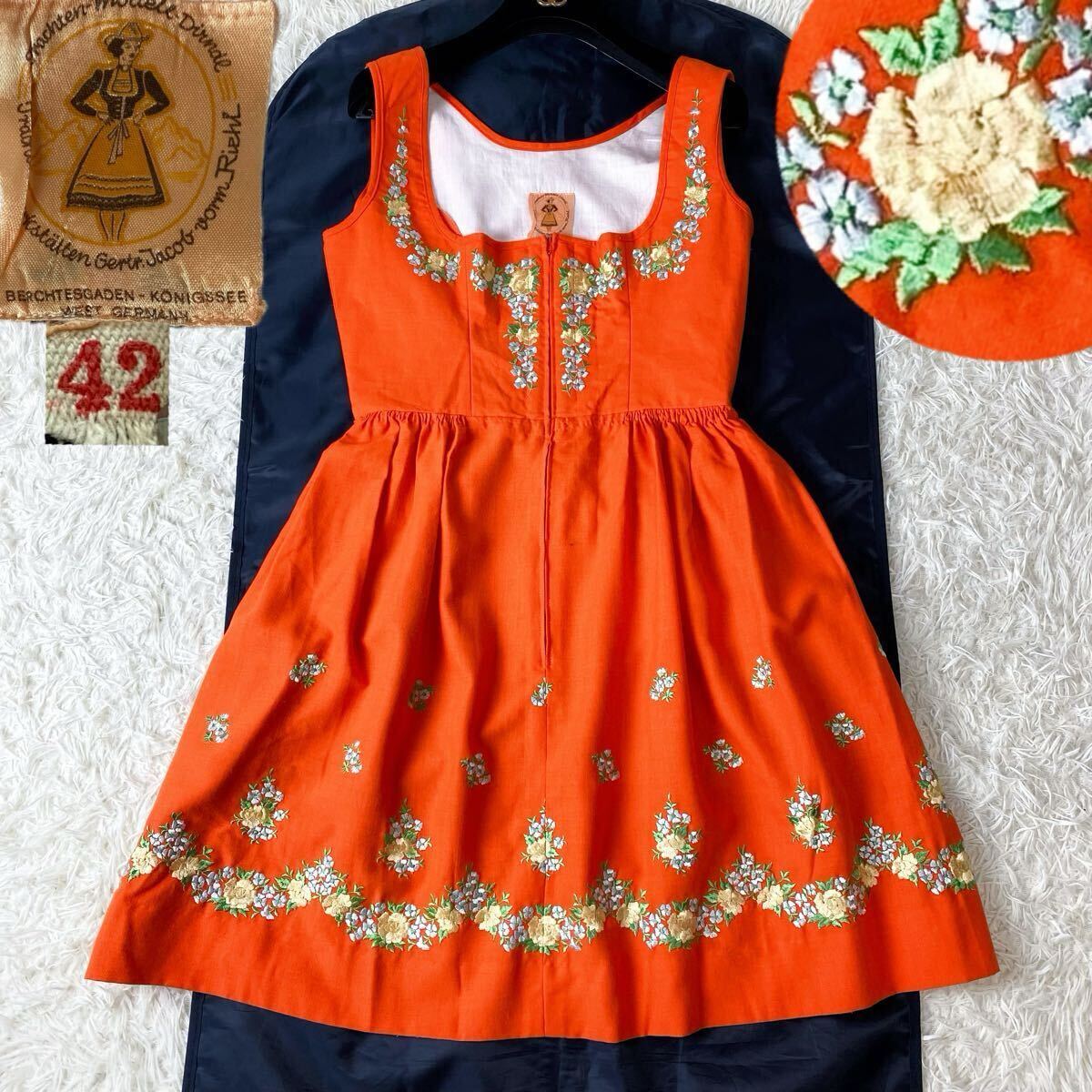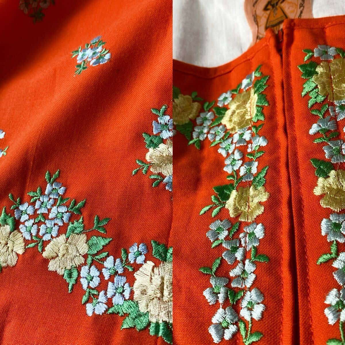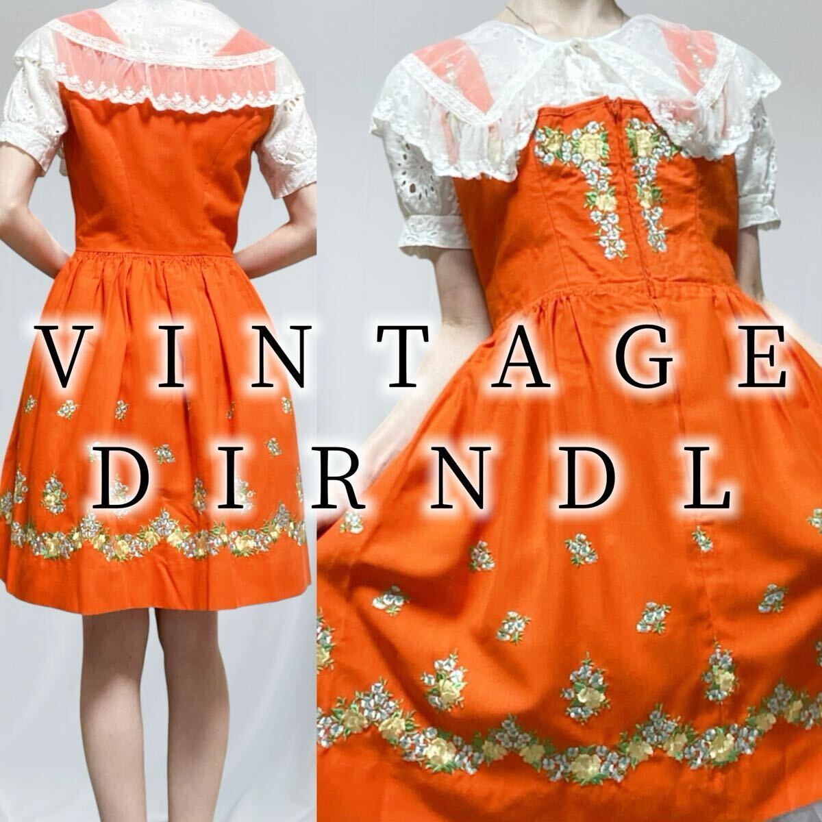 ヨーロッパ古着 TREVIRAゴールド刺繍 チロルワンピース