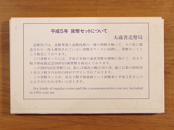 1993年 (平成5年) 記念貨入りミントセット (皇太子殿下ご成婚記念)
