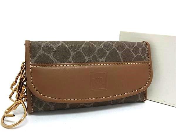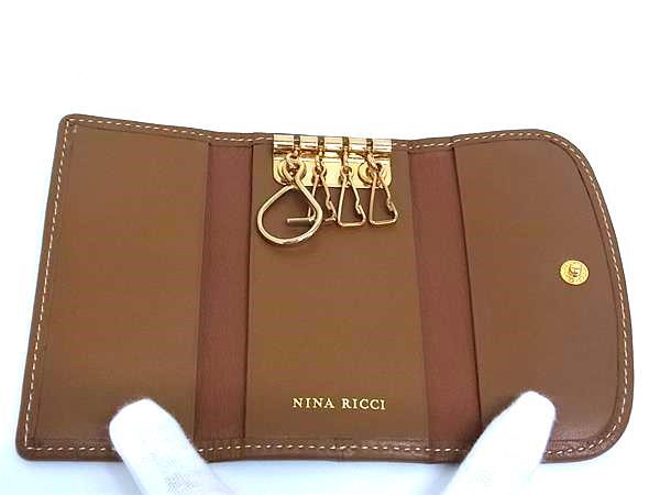 ■美品■ NINA RICCI ニナリッチ PVC×レザー 総柄 4連 キーケース 鍵入れ レディース メンズ ブラウン系 DG8399