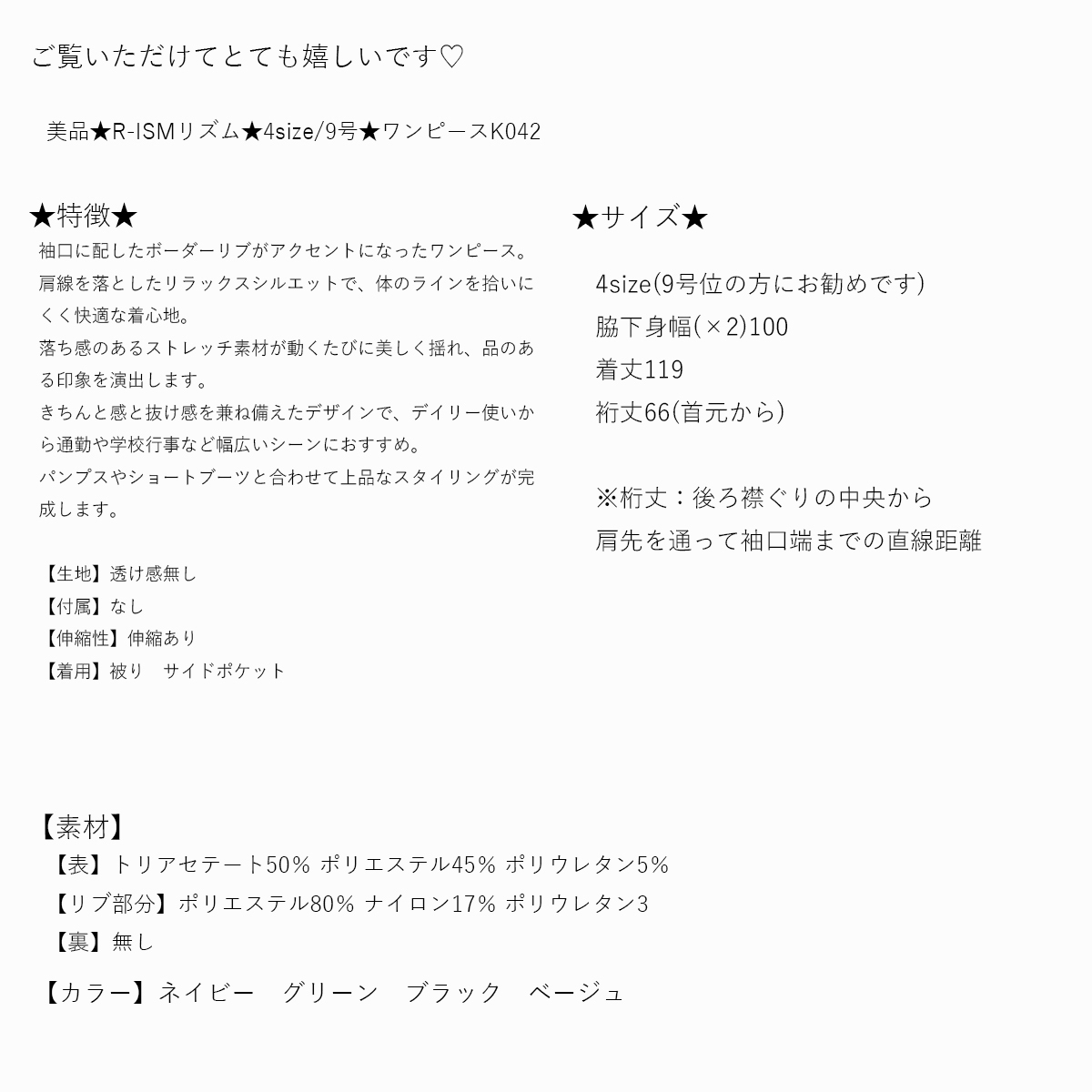 美品★素敵279★R-ISMリズム★4size/9号★ワンピースK042