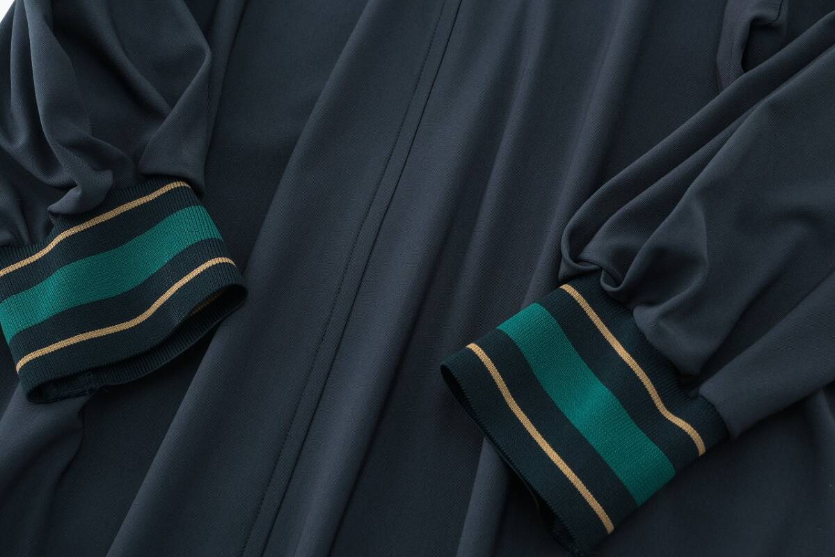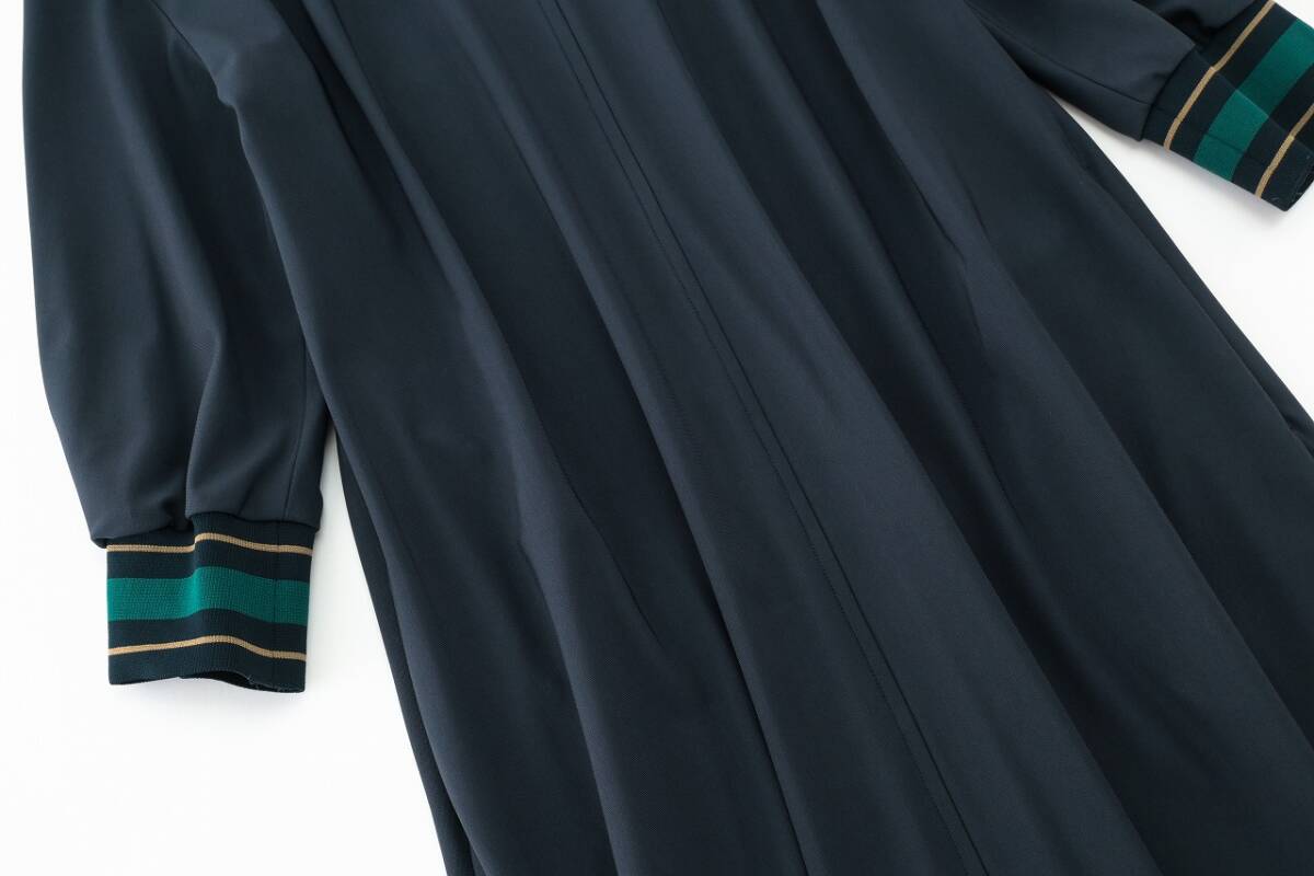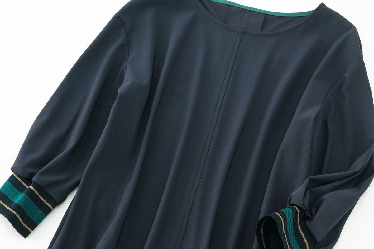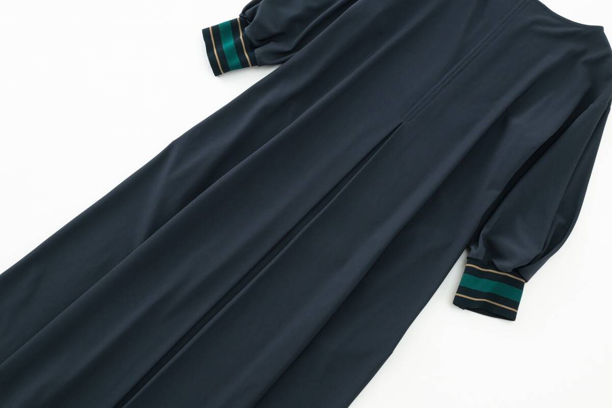 袖口に配したボーダーリブがアクセントになったワンピース。