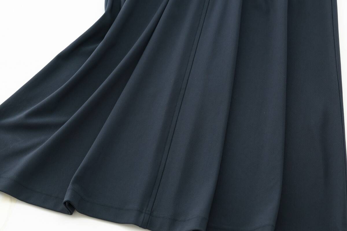 落ち感のあるストレッチ素材が動くたびに美しく揺れ、品のある印象を演出します。