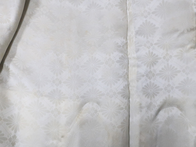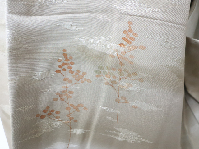 リサイクル商品のため、羽裏にしみがございますがご着用いただけると存じます。 地色は 灰緑 です。 1枚目の画像が近いお色かと思われます。 素材は正絹です。 |