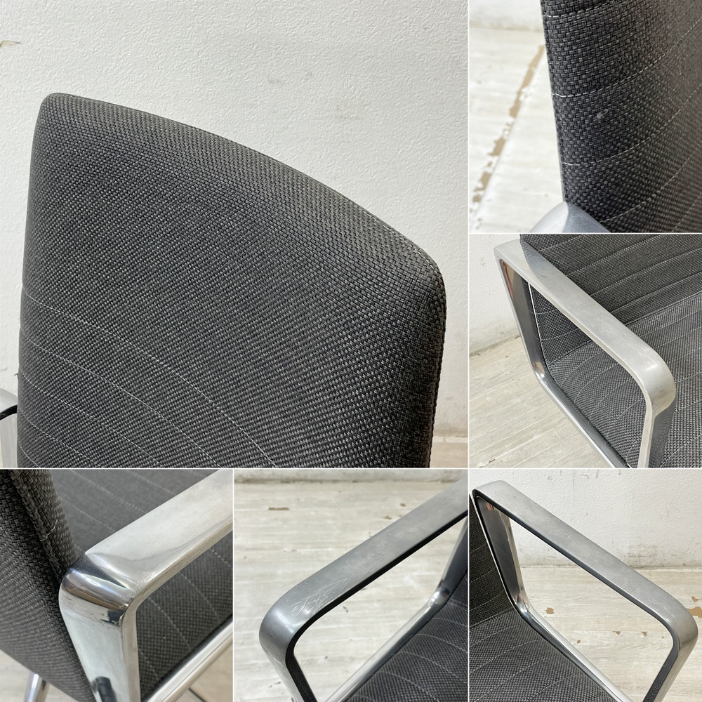 コメント | 1955年にスペインのバルセロナで設立した家具ブランド" アンドリューワールド / Andreu World "。 スペイン家具業界トップの輸出量を誇り、パトリシア・ウルキオラやジャスパー・モリソンをはじめとする世界的著名デザイナーとコラボレーションを行い、数多くの賞を受賞しています。 そんな同社から販売されている「 フレックス エグゼクティブ / Flex Executive 」アームチェア。 幅広い仕様を選択可能なアイテムとなっており、今回入荷したのは背もたれが3つある内の中間の高さであるインターミディエイトバックのアームチェア。張地はファブリックでアルミベースのキャスター仕様となっています。 背座一体となっており、身体の接地面が多い為長時間の着座の際も疲れにくく、全体にクッションが入っているので包み込まれるような座り心地に。 アームやキャスターも相まってデスクワークをストレスなく快適にサポート。 座面の高さはガスシリンダーにて簡単に調整が可能。身体の大きさに関係無く、どなたでもお使い頂けます。 グレーカラーのファブリックと、鈍く光るアルミニウムフレームの組み合わせはモダンな雰囲気で清潔感のあるルックス。 デスク周りの環境をランクアップさせたい方にオススメのチェアです。 ※当ショップは、主にリサイクル品を取り扱っております。基本的にUSED品である事をご理解頂き、ご入札をご検討下さいませ。 |