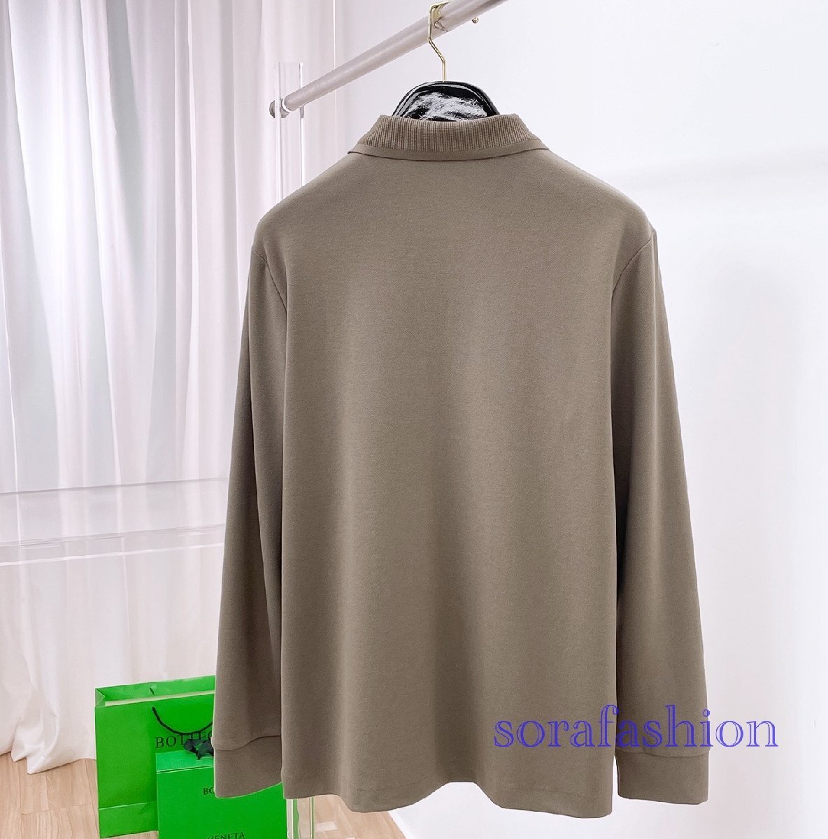 Loro Piana ロロピアーナ メンズ長袖ポロシャツ T-シャツ グリーン 3XLサイズ トップス カットソー 無地 紳士服 コットン 秋物 シンプル