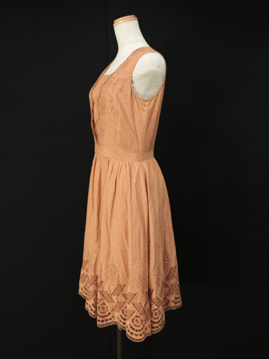 前面や裾に施された繊細な刺繍がポイントになっています。