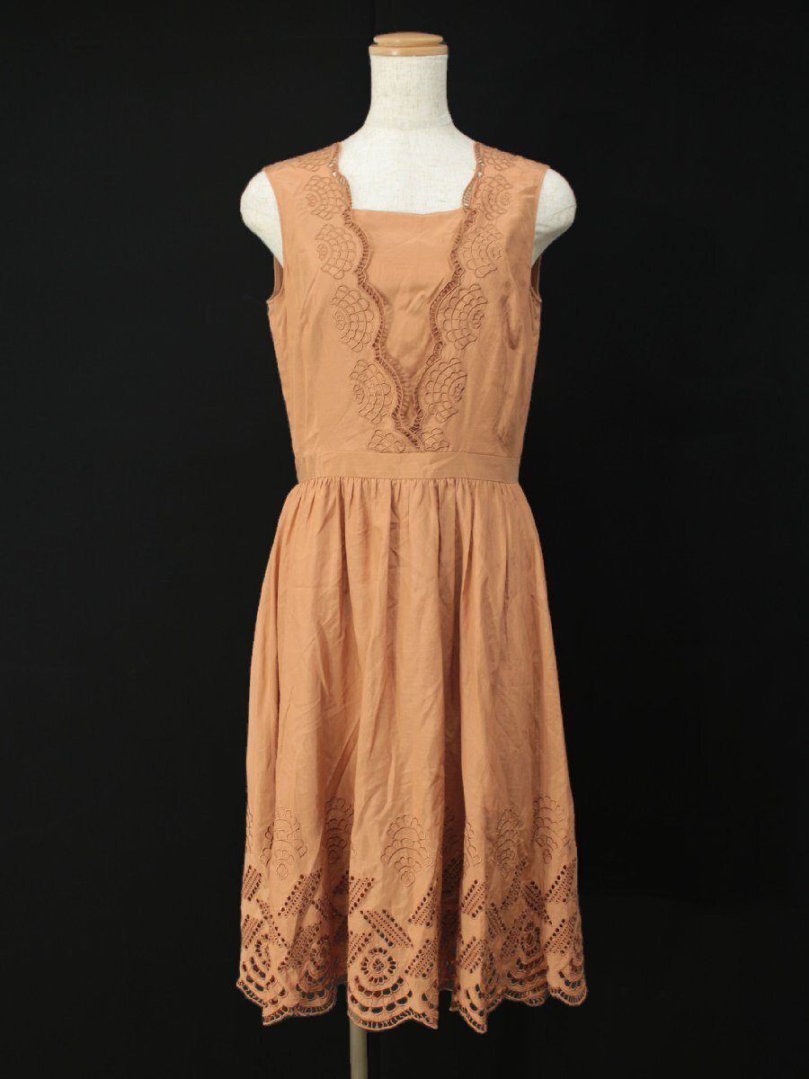 小さいサイズ ANAYI/アナイ シルクコットンノースリーブワンピース オレンジ36 an105