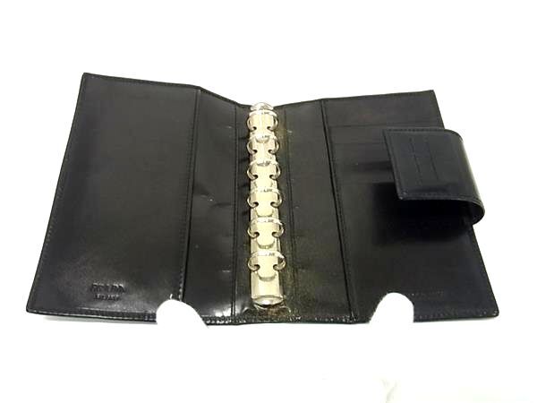 PRADA プラダ レザー 6穴式 手帳カバー スケジュール帳 アドレス帳 メンズ レディース ブラック系 DG9023