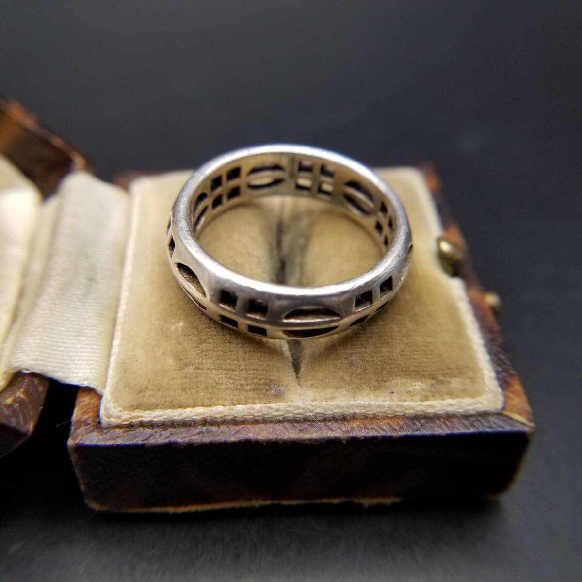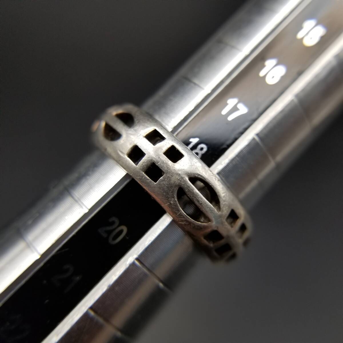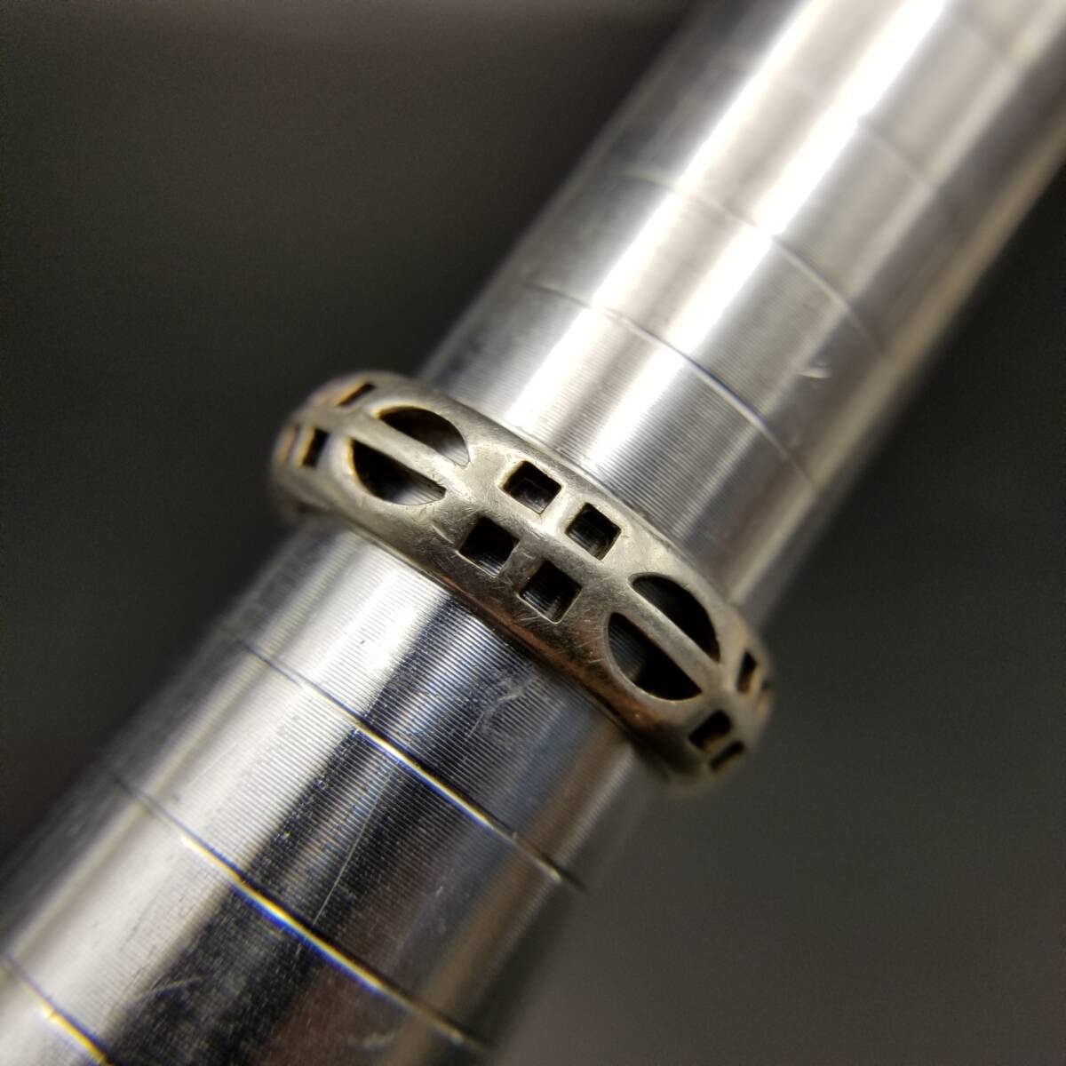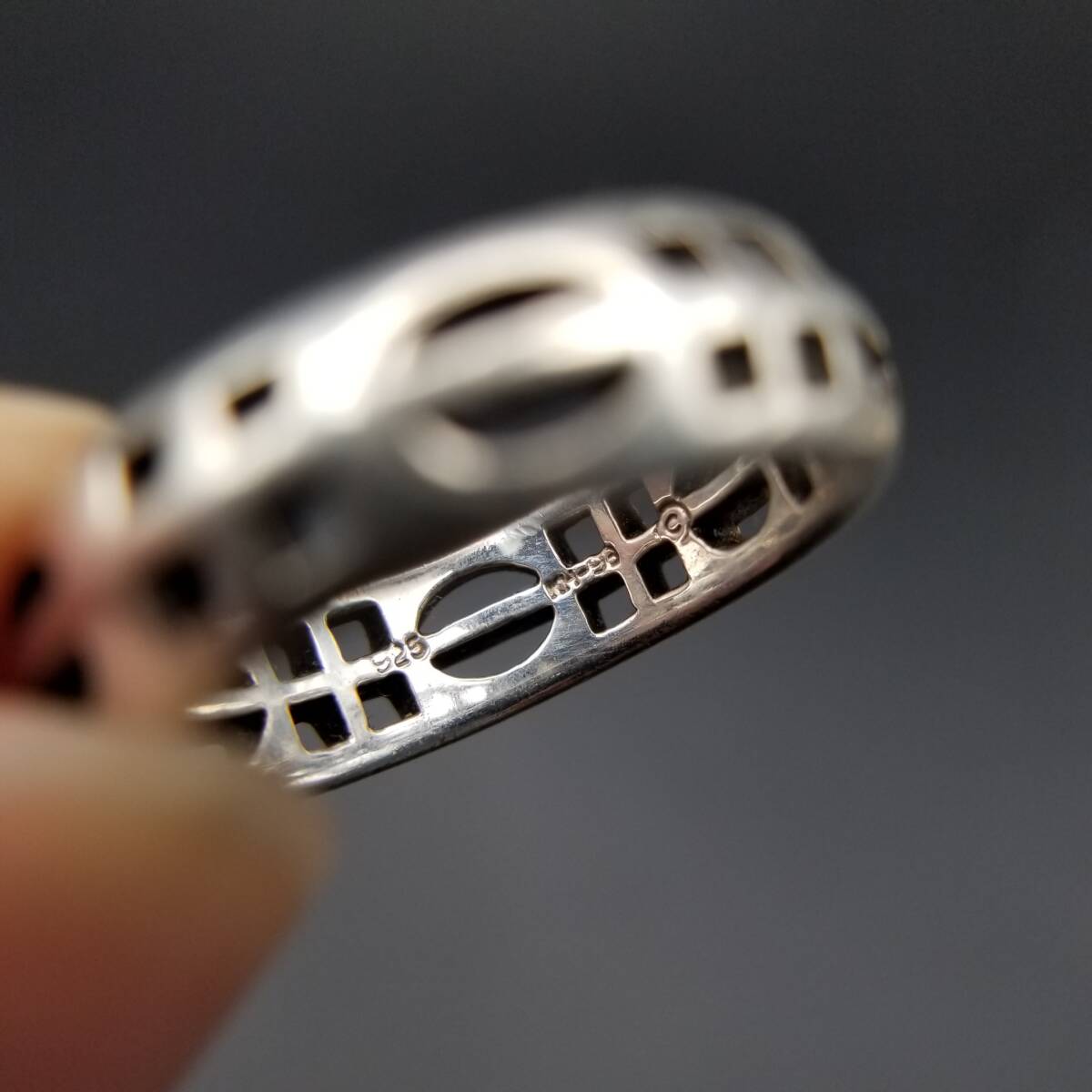 トライバル柄 紋様 オープンワーク エタニティ 925 シルバー ヴィンテージ バンド リング銀 指輪 中太 メンズジュエリー Y24-O