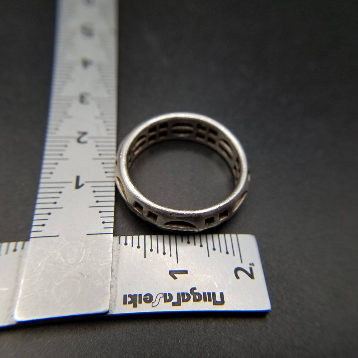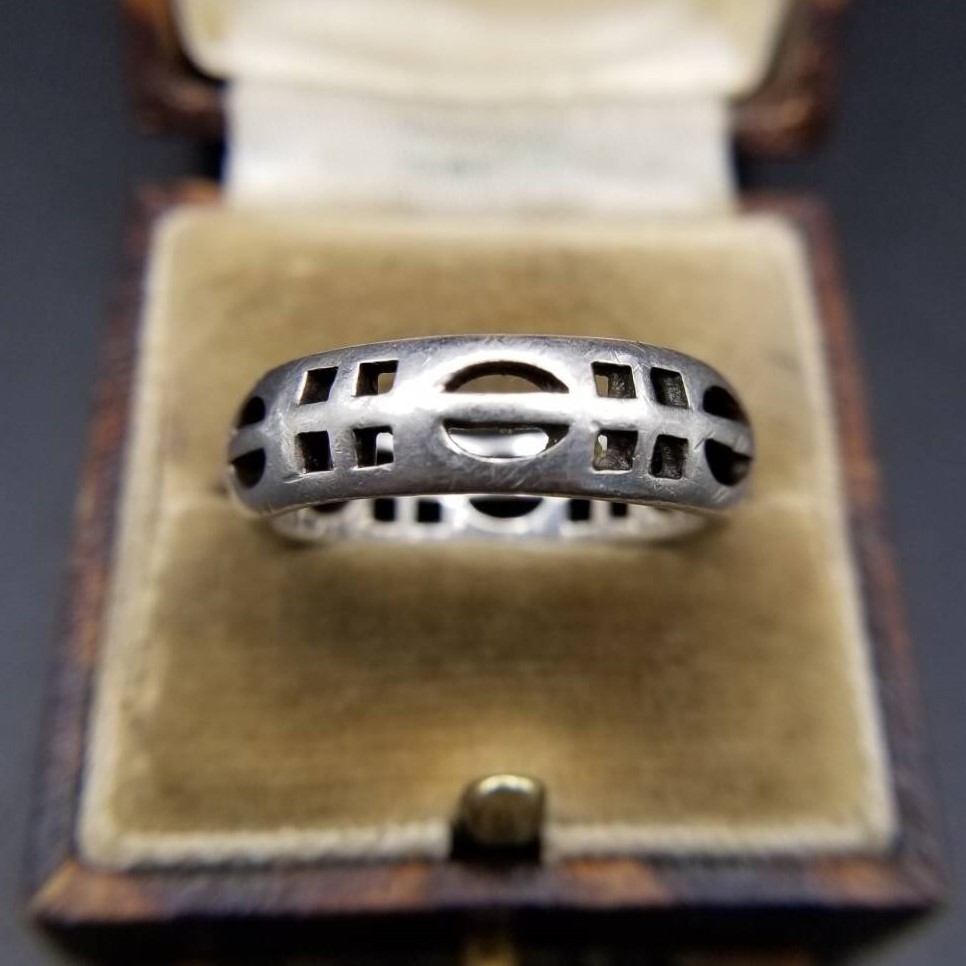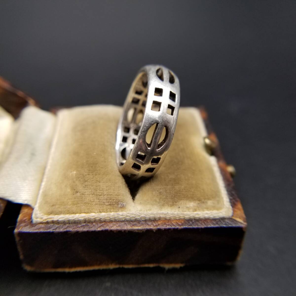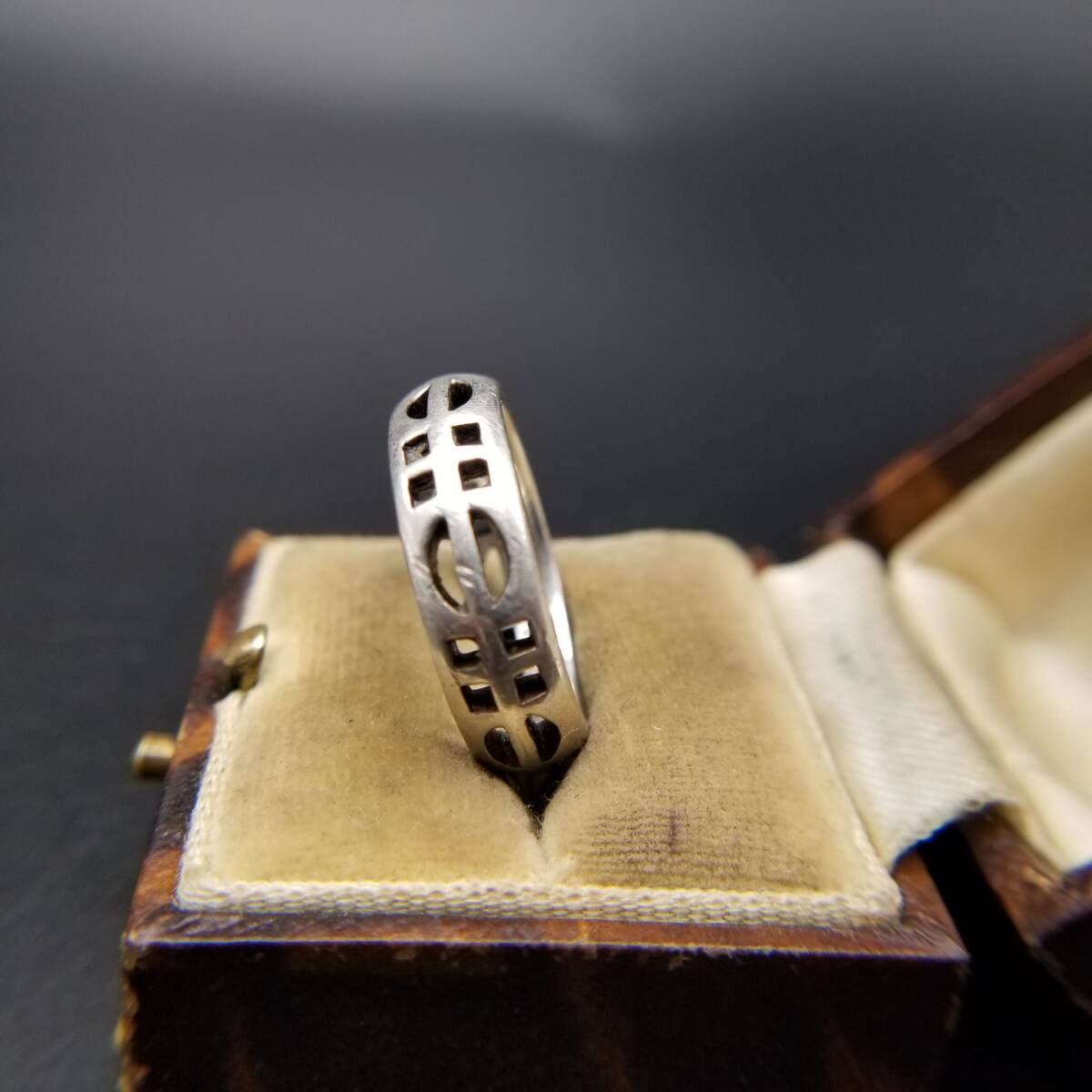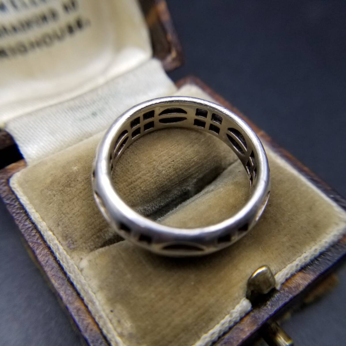 トライバル柄 紋様 オープンワーク エタニティ 925 シルバー ヴィンテージ バンド リング銀 指輪 中太 メンズジュエリー Y24-O