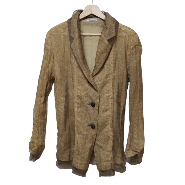 イッセイミヤケ ISSEYMIYAKE サイズL - ライトブラウン×ダークブラウン レディース 長袖/メッシュ/ロング丈/春/秋 美品 ジャケット