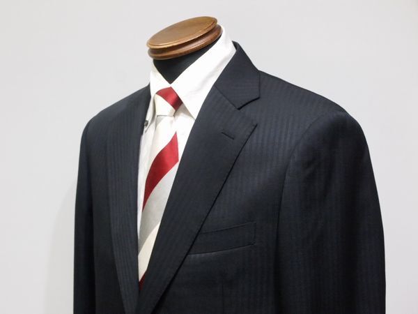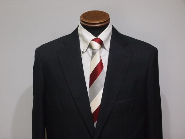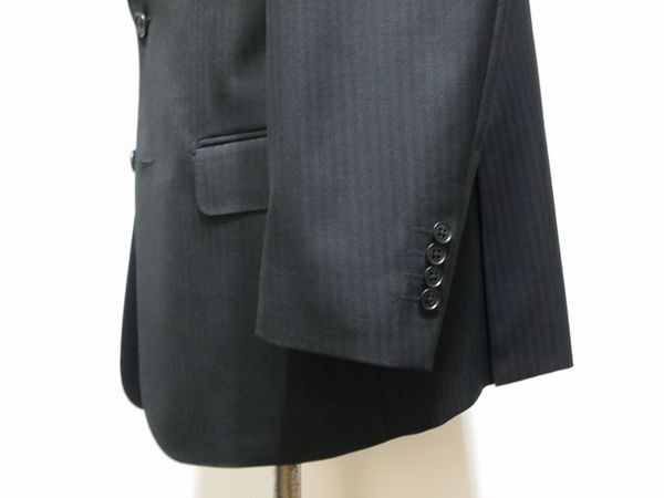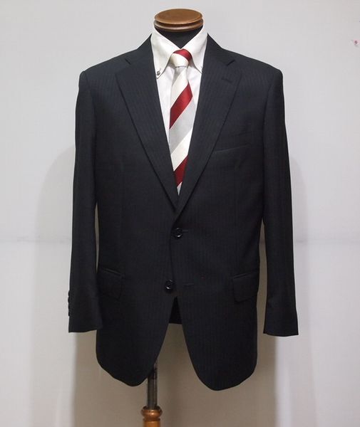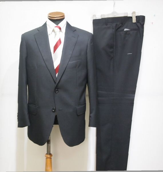 ★秋冬物 総裏スーツ★5665★ノータック 2つ釦スーツ★BB4 胸囲98,ウエスト92,身長165★ブラック★ストライプ