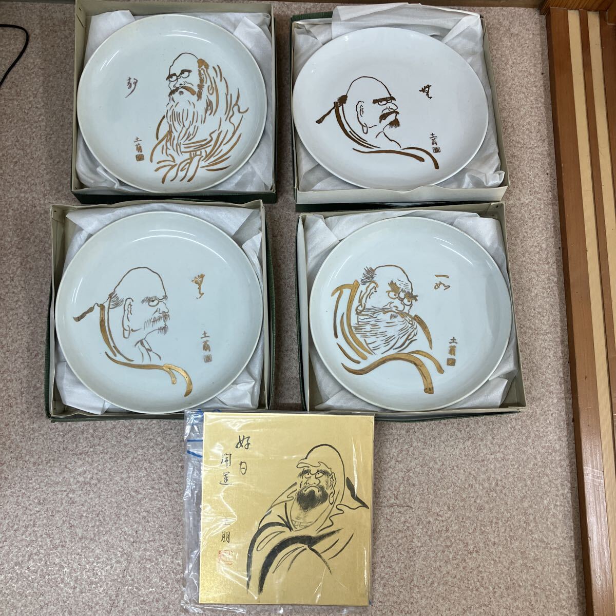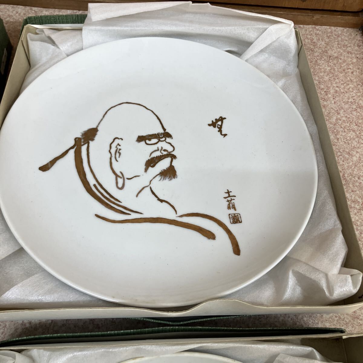 工芸品 陶芸 在名 食器 陶器 陶磁 皿 大皿 絵皿 平皿 昭和 ダルマ 達磨 土朋 土萌 開運 セット まとめ売り 遺品整理 レトロ アンティーク オブジェ 置物 飾り皿 骨董品