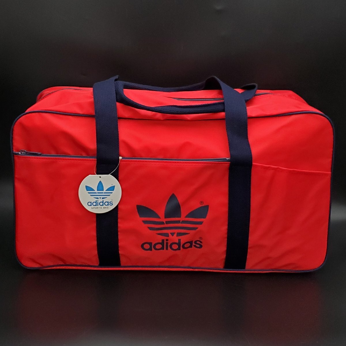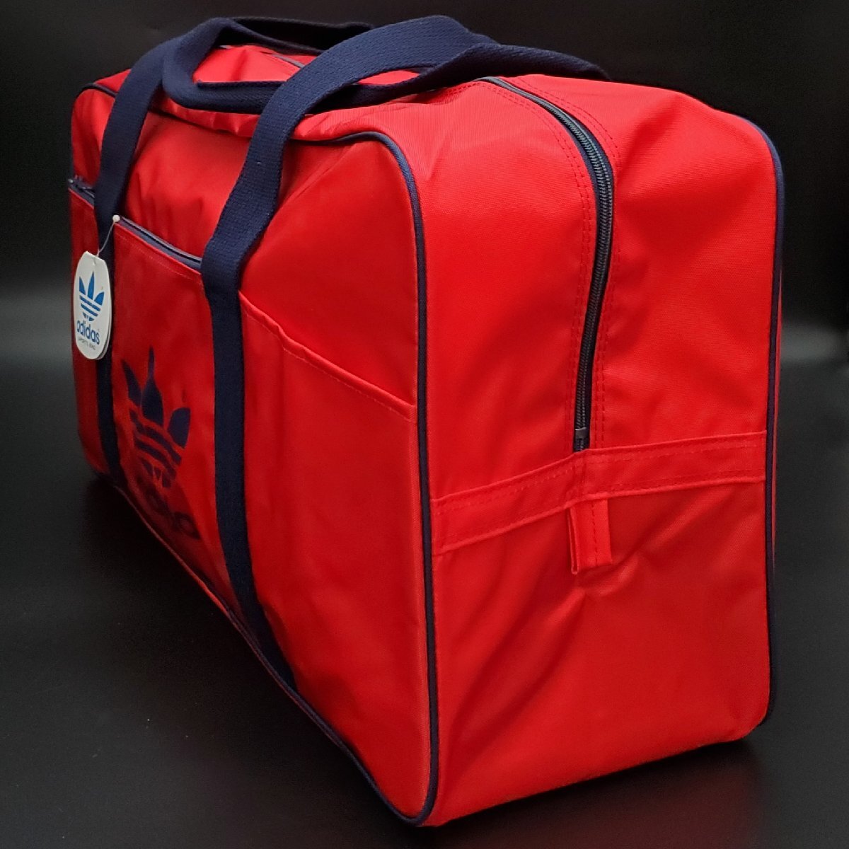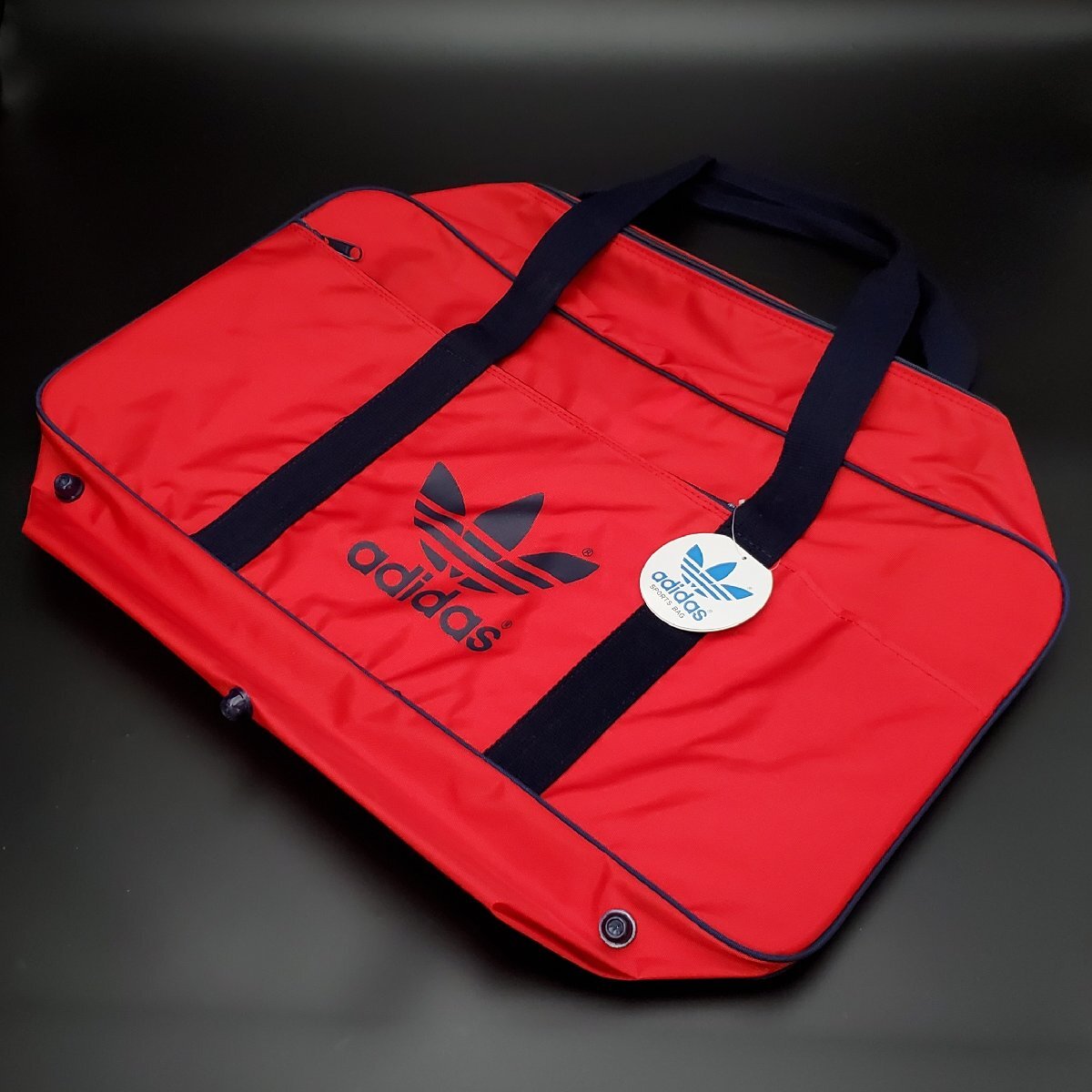 【宝蔵】タグ付き adidas アディダス トレフォイルロゴ スポーツバッグ ボストンバッグ 幅約57cm レッド ナイロン デッドストック ⑭