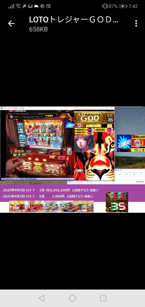 2025年9月5日 ロト7 1等 403,352,100円 1点目ナビ3 当選♪