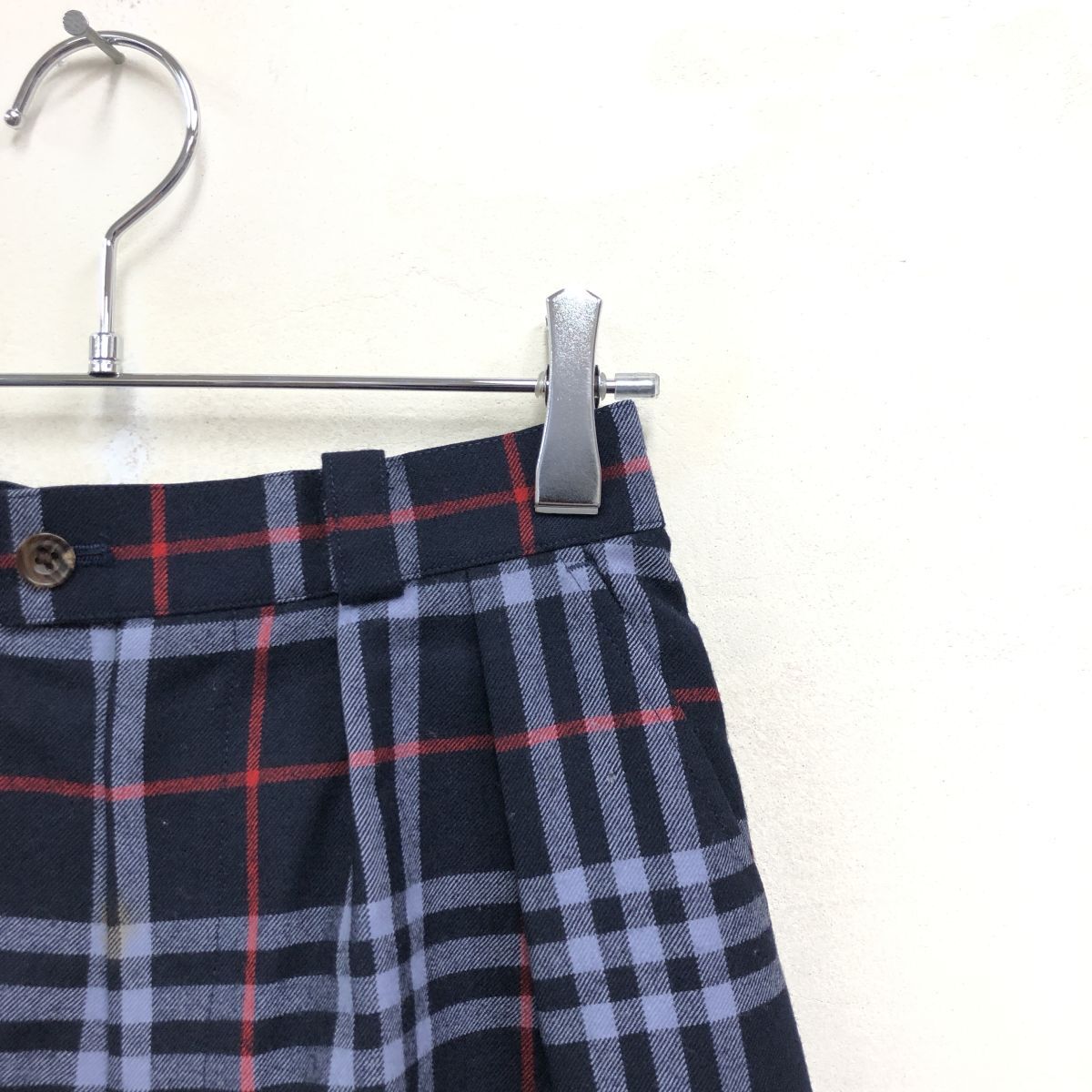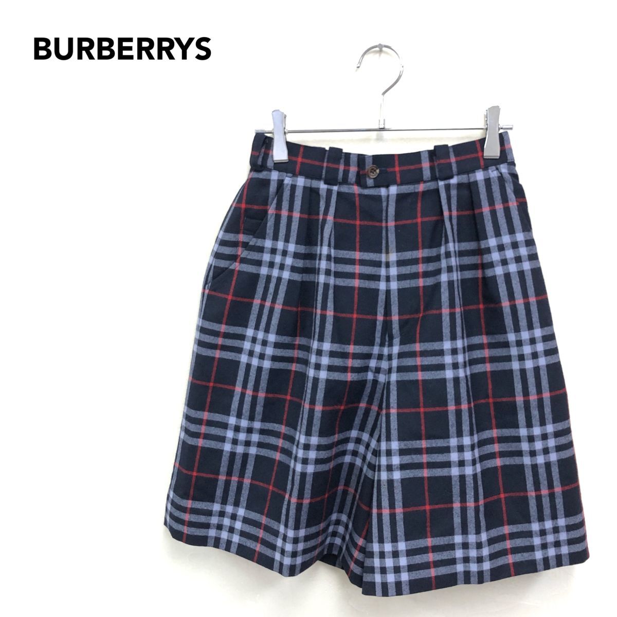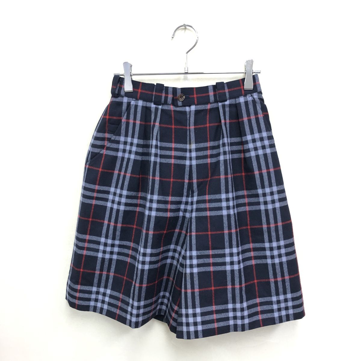 2K1487-Q◆BURBERRYS バーバリーズ キュロット ハーフパンツ チェック ウエストゴム 2タック ボトムス◆size M ネイビー 紺 赤 ウール100