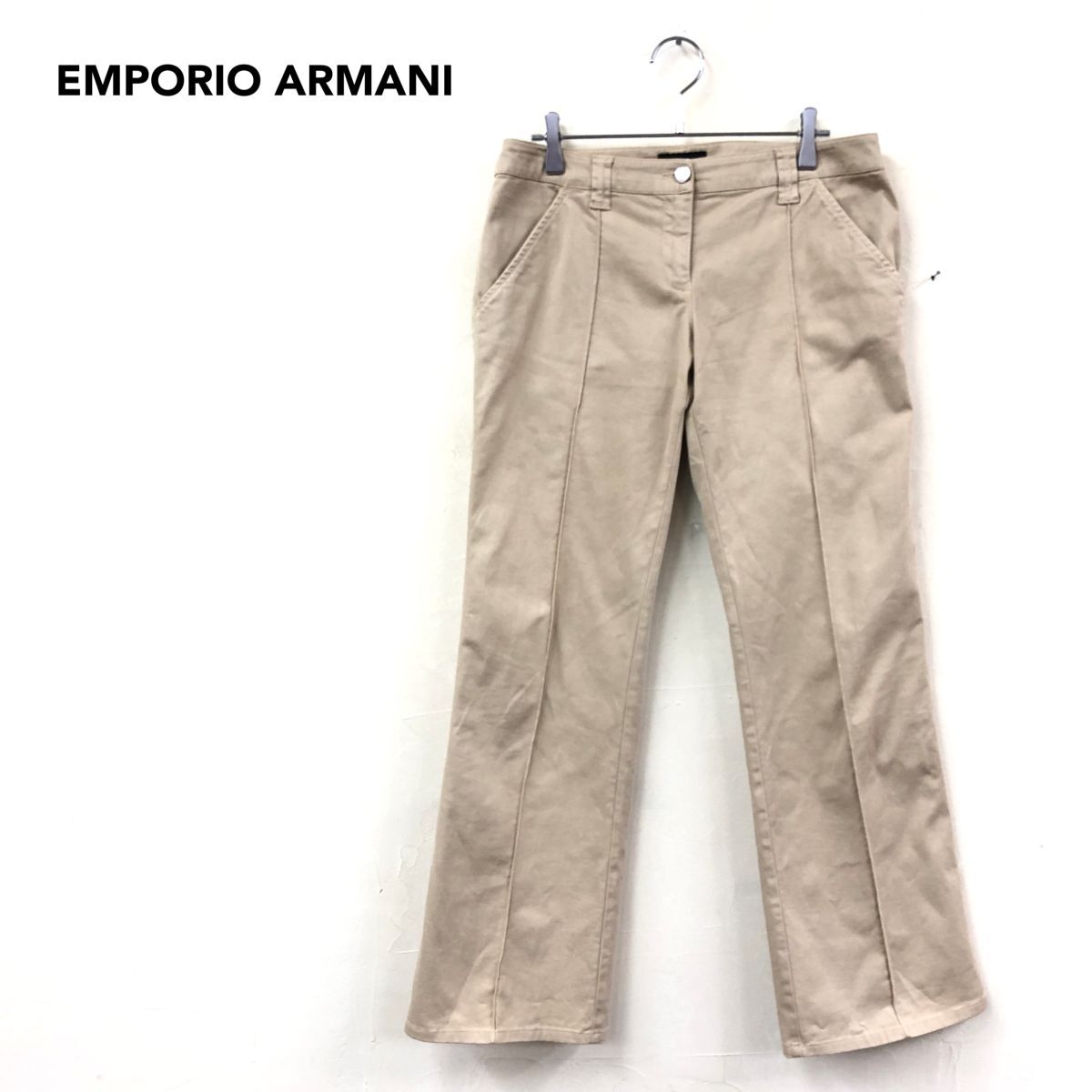 2K1486-Q◆イタリア製◆EMPORIO ARMANI エンポリオ アルマーニ テーパードパンツ ピンタック カジュアル◆size 40 ベージュ 茶系 コットン