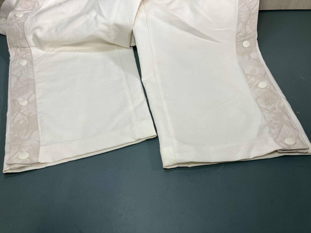 両サイドのスナップ部分、開きます。 ウエスト:約100cm 股上:約33cm 股下:約72.5cm わたり幅:約38cm 裾幅:約24cm サイズは平置きの状態で計測しております。 若干の差異はご了承ください。 画像はスマートフォンによる撮影のため、実際のお色と異なる場合がございます。また、お使いのPC環境やスマートフォン端末などによっては実際のお色と異なる場合がございます。 中古品のため使用感があり、画像以外にも汚れなどがある場合がございます。 |