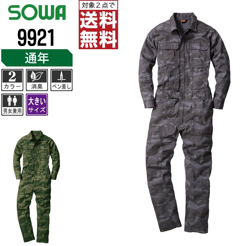 SOWA 通年 長袖 つなぎ 9921 迷彩 消臭 動きやすい 色:カモフラグリーン サイズ:6L ★ 対象2点 送料無料 ★