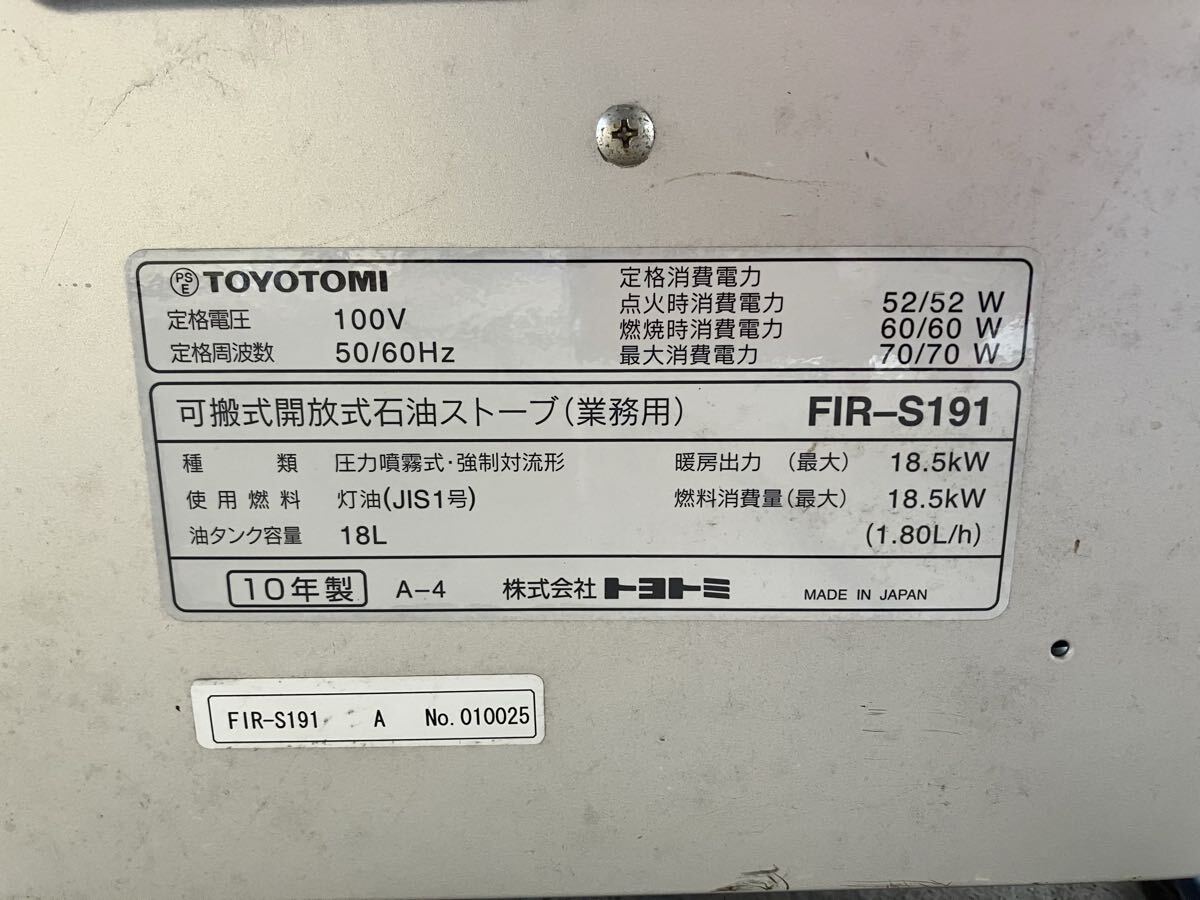 トヨトミの可搬式開放式石油ストーブ(業務用)になります。