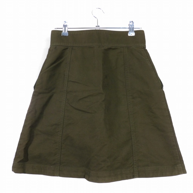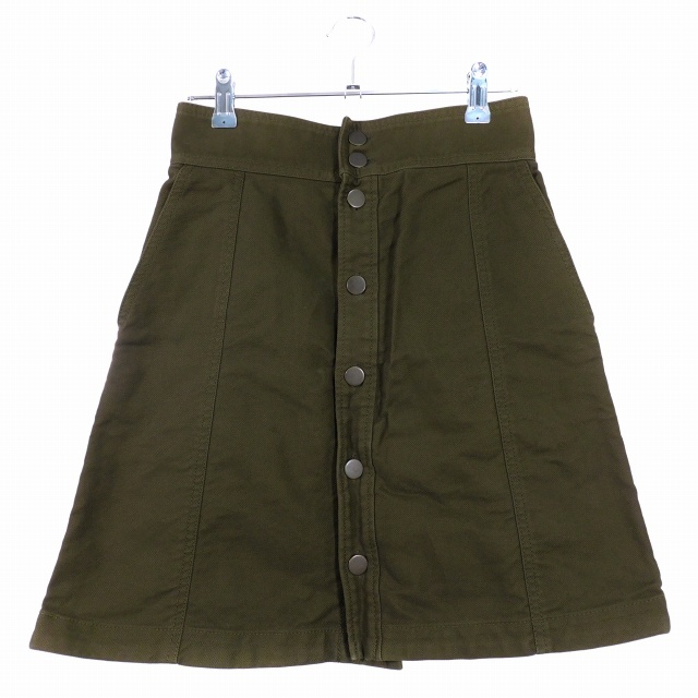 マカフィー MACPHEE トゥモローランド 台形スカート ミニ フロントボタン コットン 無地 34 カーキ ボトムス /T2 レディース