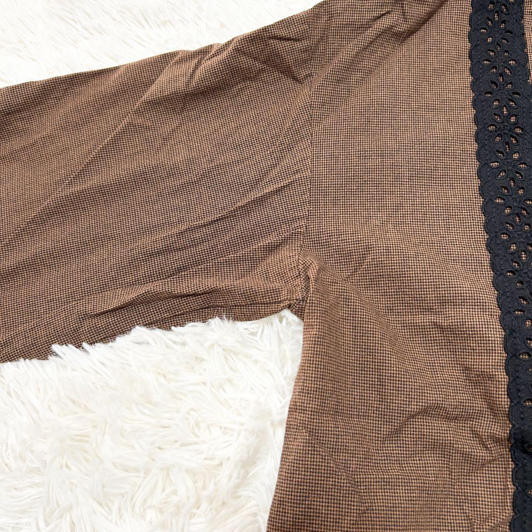 縦にあしらわれたレースのラインがフェミニンな雰囲気をプラスするブラウス。