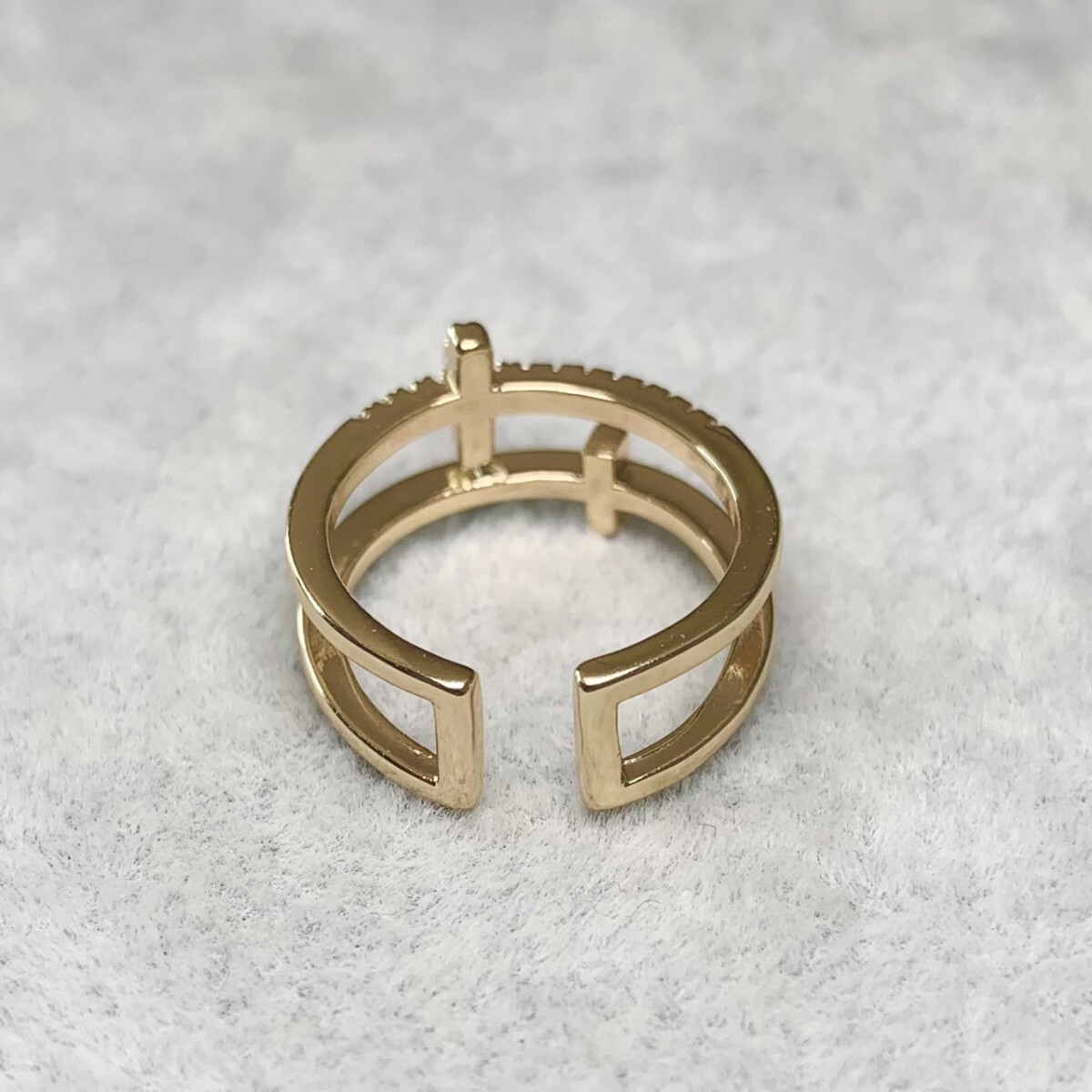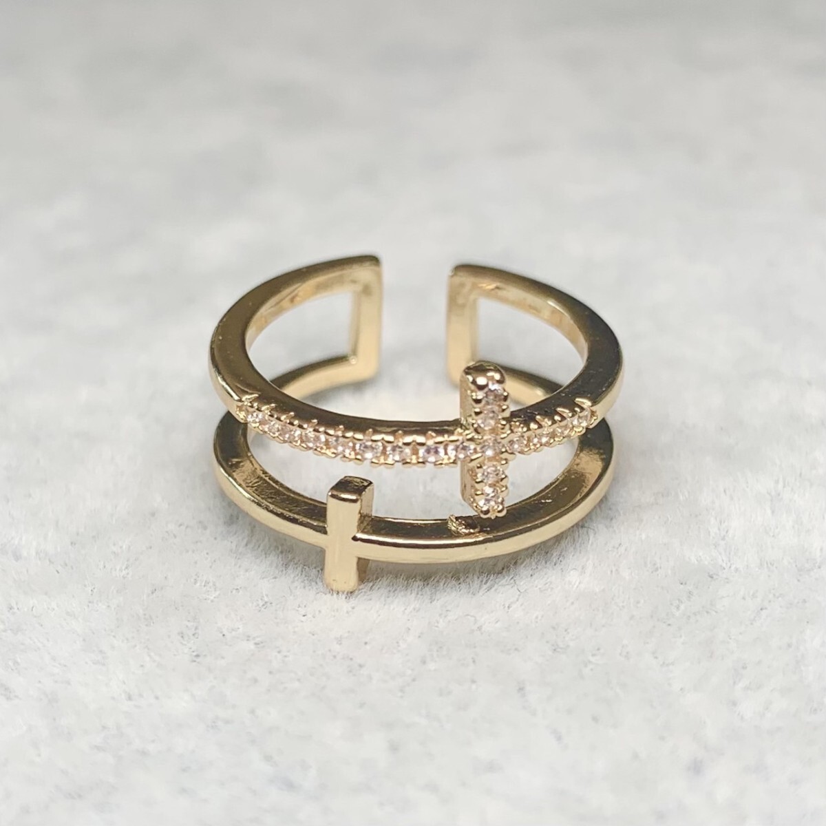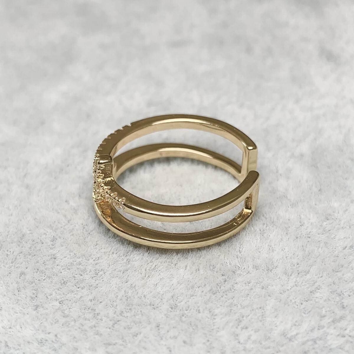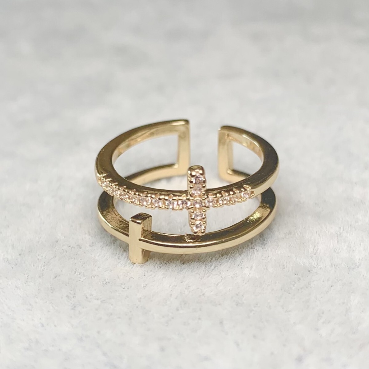 *クロスデザインに散りばめられたCZダイヤが、上品な輝きを放つリング。洗練されたフォルムは指先に存在感を与え、高級感を引き立てます。光の角度によって煌めきが変わり、華やかな印象を演出。特別なシーンはもちろん、日常の装いにも品格を添える逸品です。