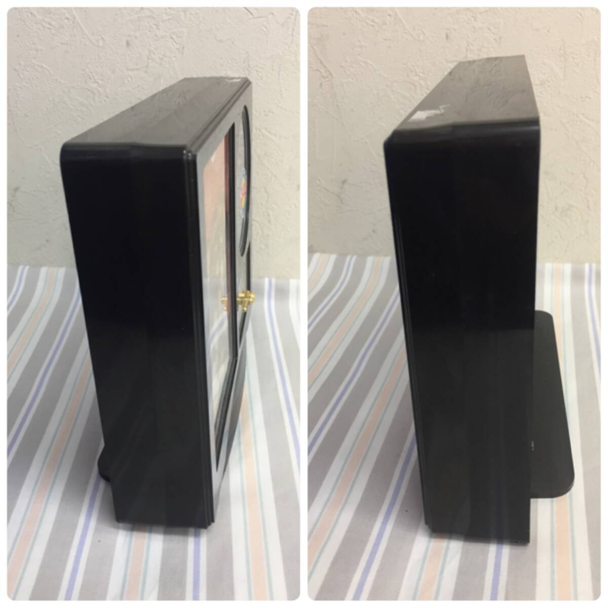 ◎サイズ 高さ:約 16.5cm 横幅:約 21.5cm 奥行き:約4cm 重量:約 404g ※多少誤差は生じると思います。 -------------- ◎状態 中古。ジャンク品。 当初ホコリだらけでした。 軽く清掃しましたが、まだ ホコリっぽいと思います。 動作確認としまして… オルゴールを鳴らしてみようと 試みましたが、ネジが回りません。 壊れているようです。 時計は電池を入れて約半日くらい 放置してみたところ時間がずれて いました。時計も壊れているようです。 ※電池は付属しません。 電池を入れる部分に錆びのような 汚れがあり、その錆びた破片が 時計の文字盤の中に混入している ようです。 上記の通りですのでジャンク品として 出品します。壊れている、使えないなど ありましてもジャンクですので 責任は負えません。 部品取りなどにいかがでしょうか。 時計の上部にシールの痕があります。 全体的に擦れや汚れが多少あります。 --------------