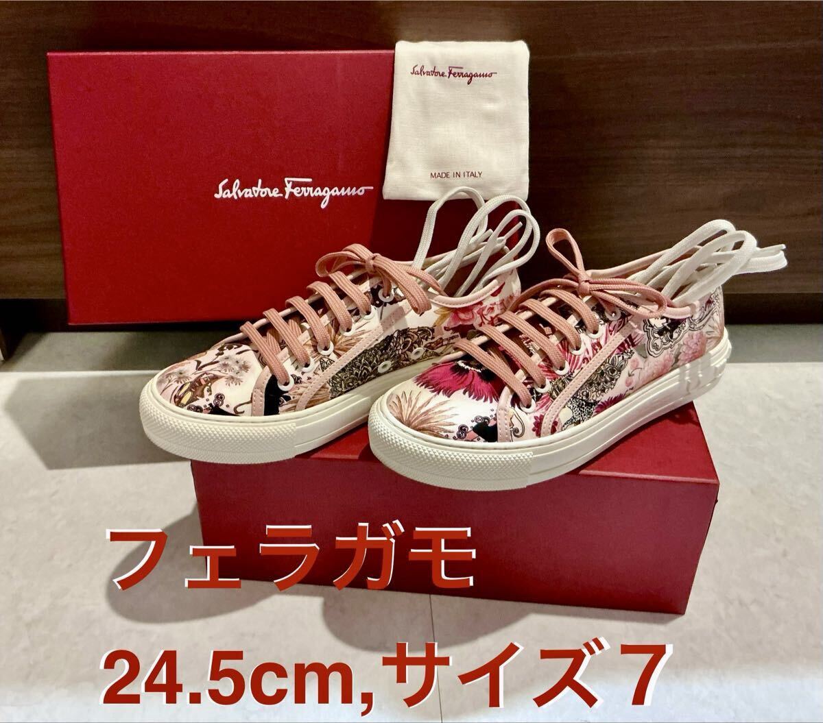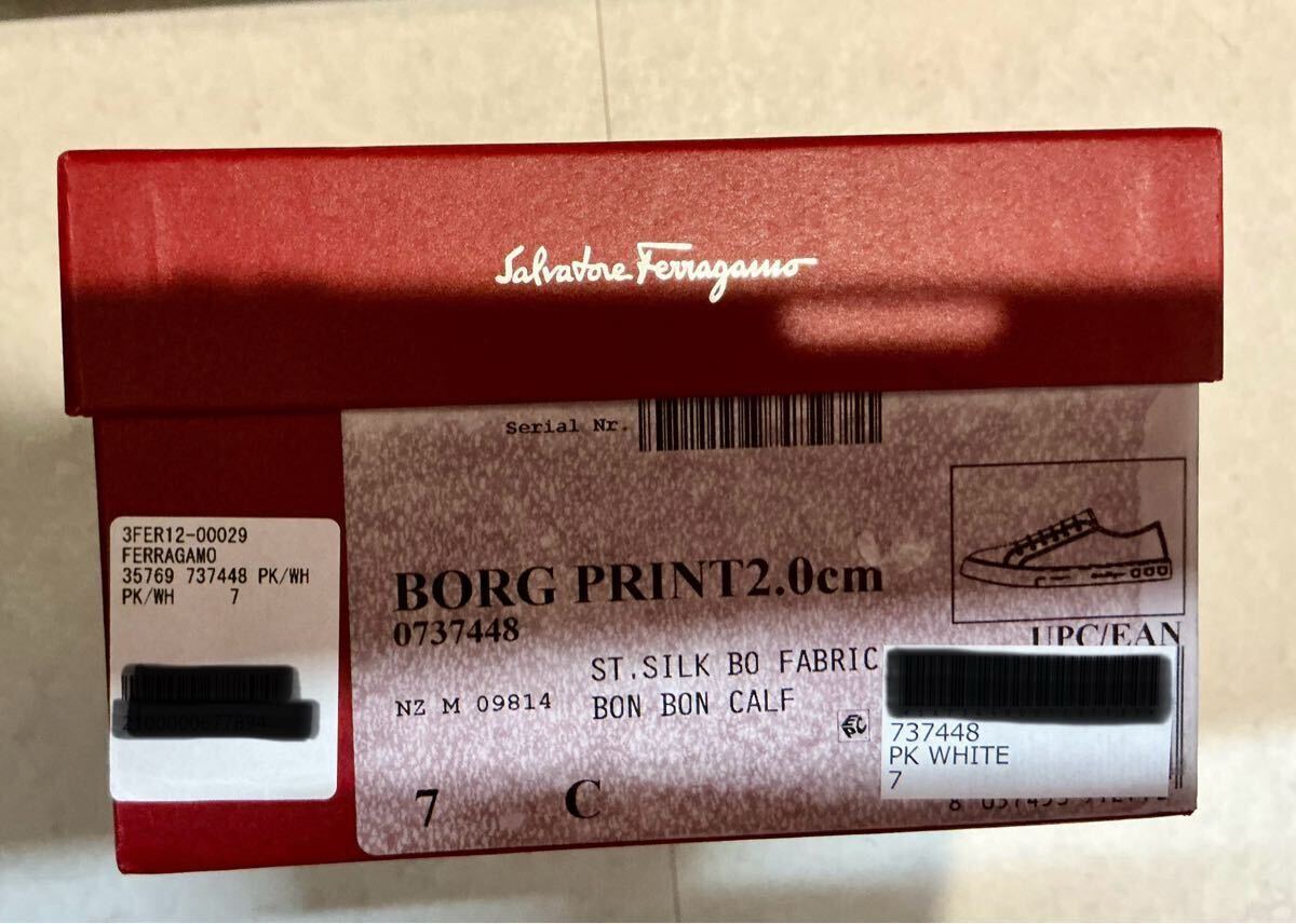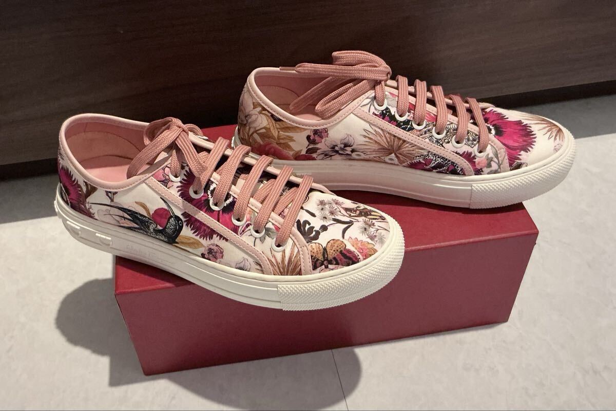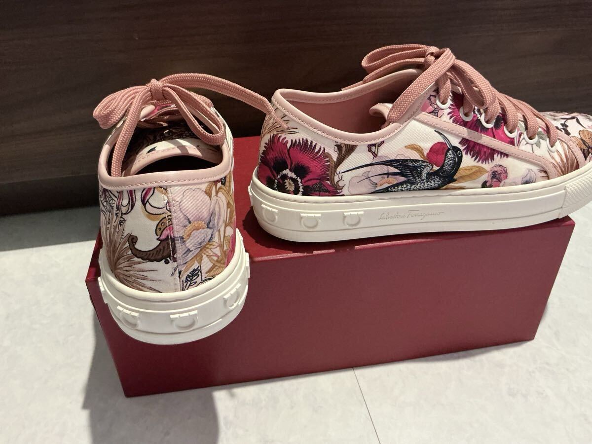 定価 106,700円。 フェラガモのスカーフ柄が美しいスニーカーです。