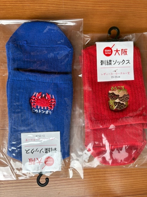 ブルーが道頓堀・蟹ver  と レッドがたこ焼きの刺繍入りです