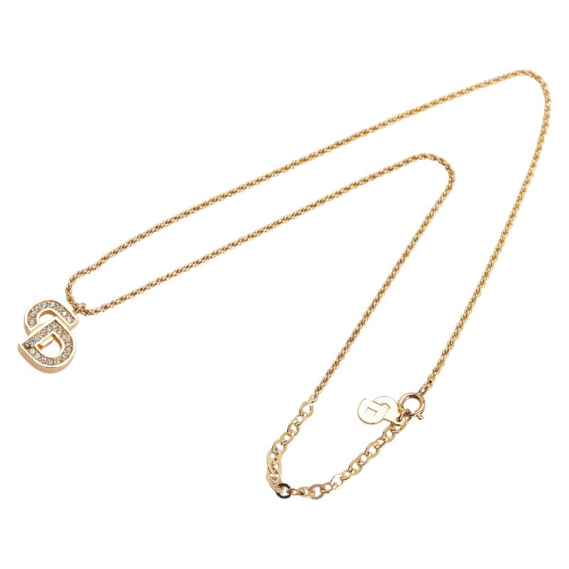 ディオール CDロゴ ラインストーン ネックレス ゴールド メッキ レディース Dior 【中古】