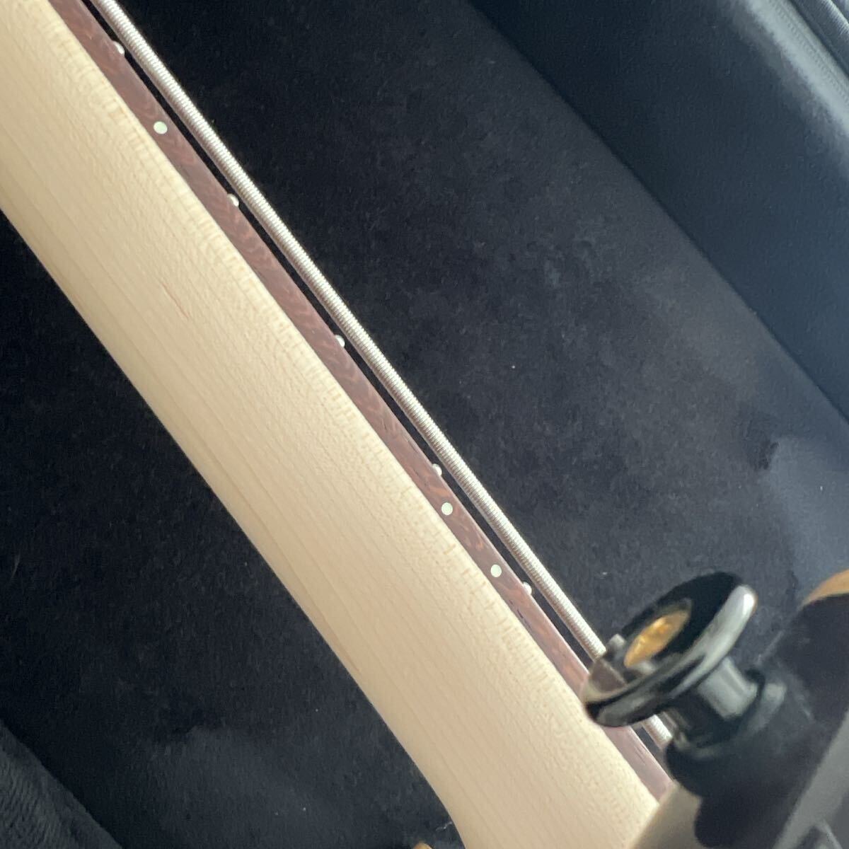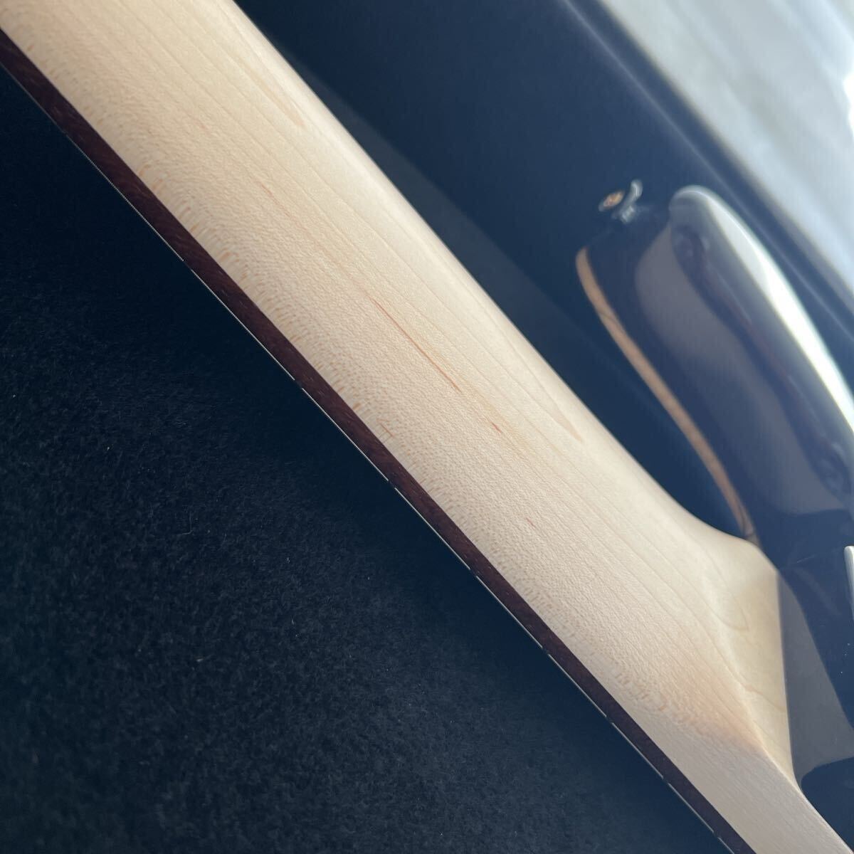 ネックは美しいMaple、板目取りでネック両端に綺麗に一直線のリボン杢が入っています。