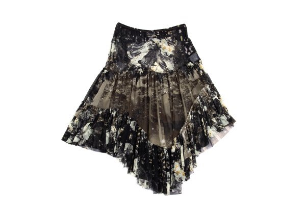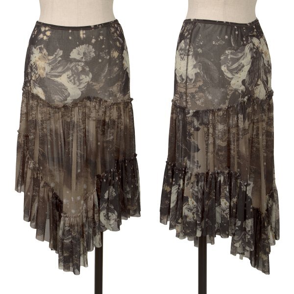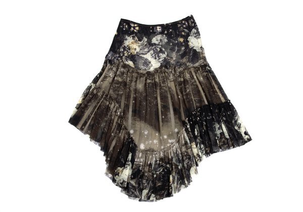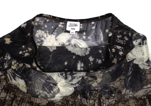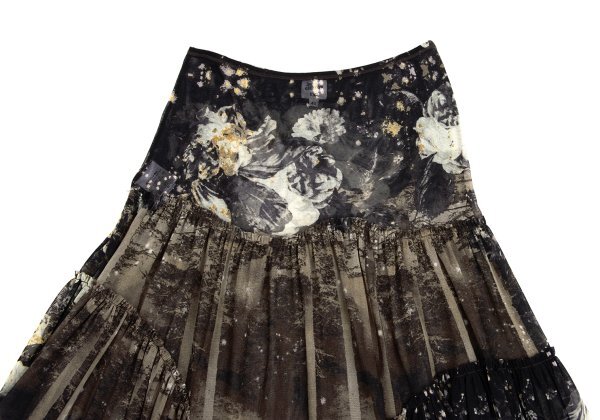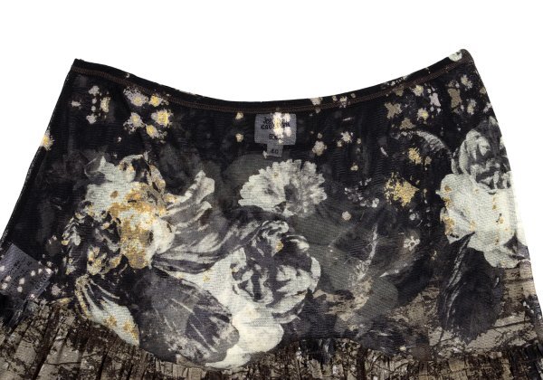 ジャンポールゴルチエ ファムJean Paul GAULTIER FEMME フローラルフォレストプリント切替デザインパワーネットスカート 黒カーキ40 |