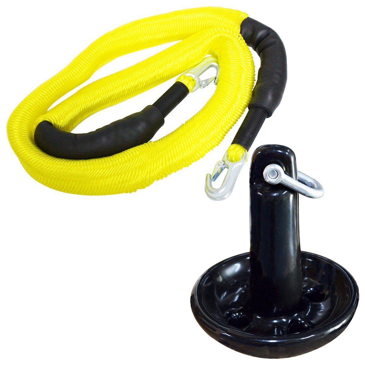 【新品即納】『伸縮ロープ/アンカーセット』マッシュルームアンカー 10LBS 4.5kg 黒 ブラック 6M フロート のびのび アンカー ロープ 黄色