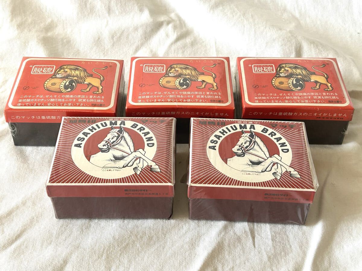 旭馬BRANDとたいこしし 太鼓獅子の未開封マッチ箱 5個セットです。