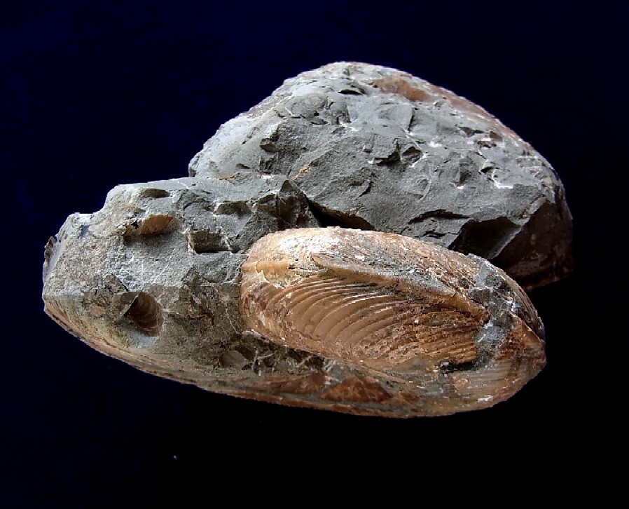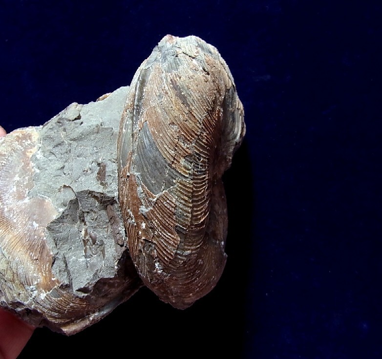 商品説明 | ■ダメシテス ●分 類 : 軟体動物頭足類 ●産 地 : 北海道留萌郡小平町小平蘂川 ●時 代 : 中生代白亜紀 ●標本の大きさ : 12×8×6㎝ ●本体の大きさ : 長径 5㎝、8㎝ | |