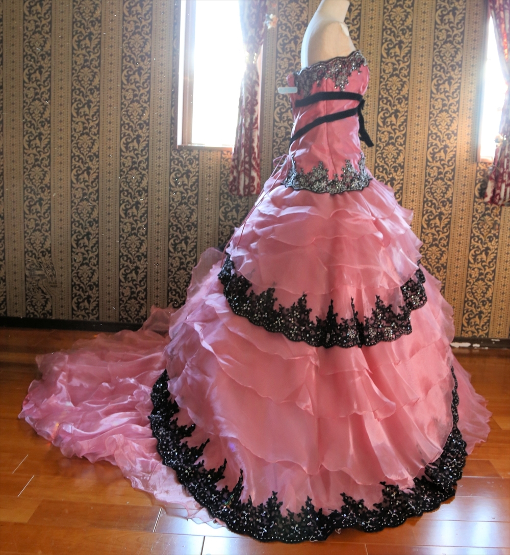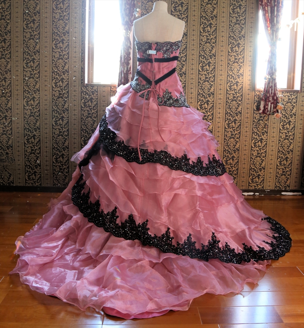 大きいサイズ高級ウエディングドレス11号13号15号L~3Lサイズくすみピンクカラードレス編み上げ調節可能
