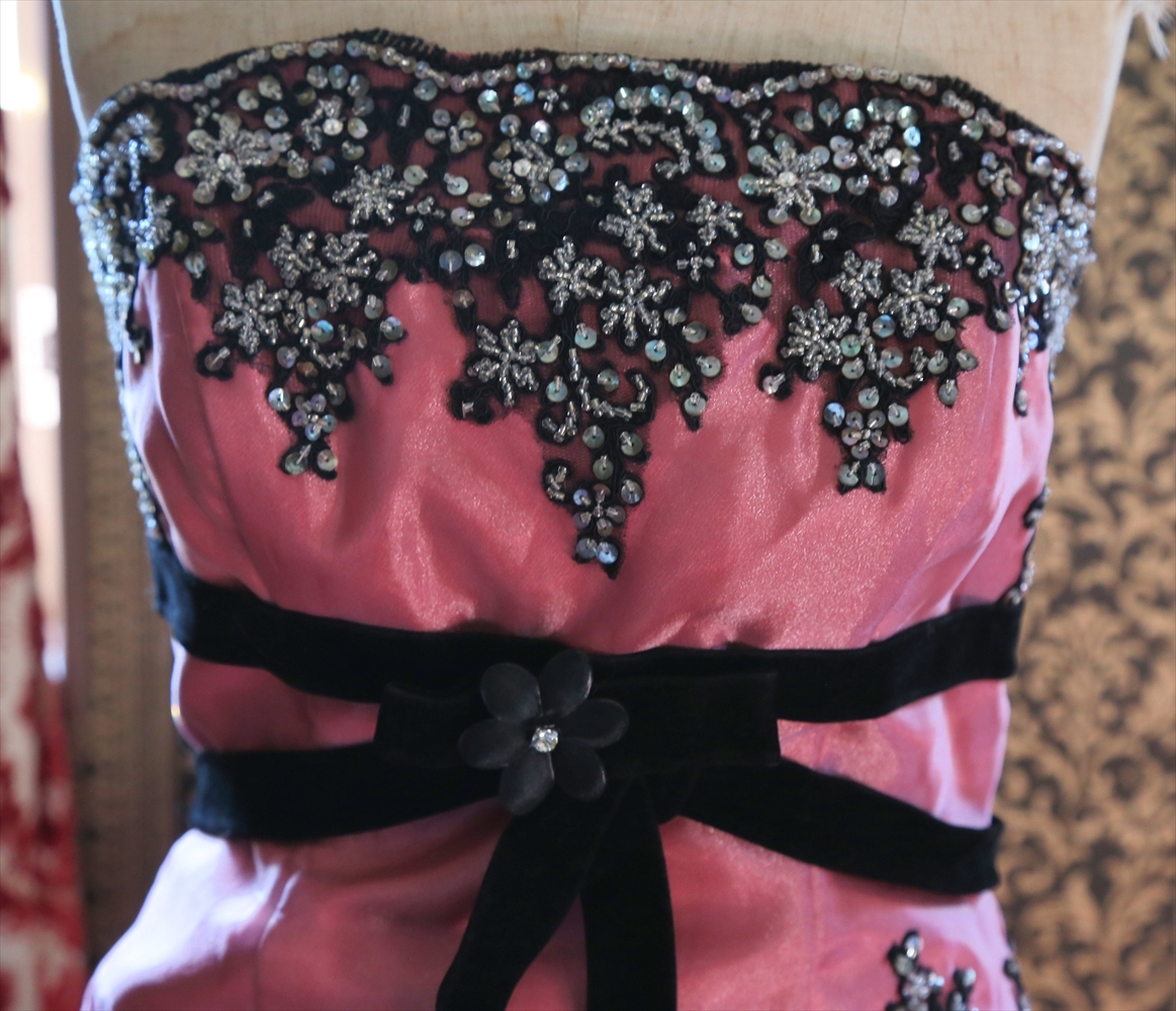 編み上げの内側、ファスナーの横あたりに若干オーガンジー生地の傷がありますが、着用していても気付かないレベルです