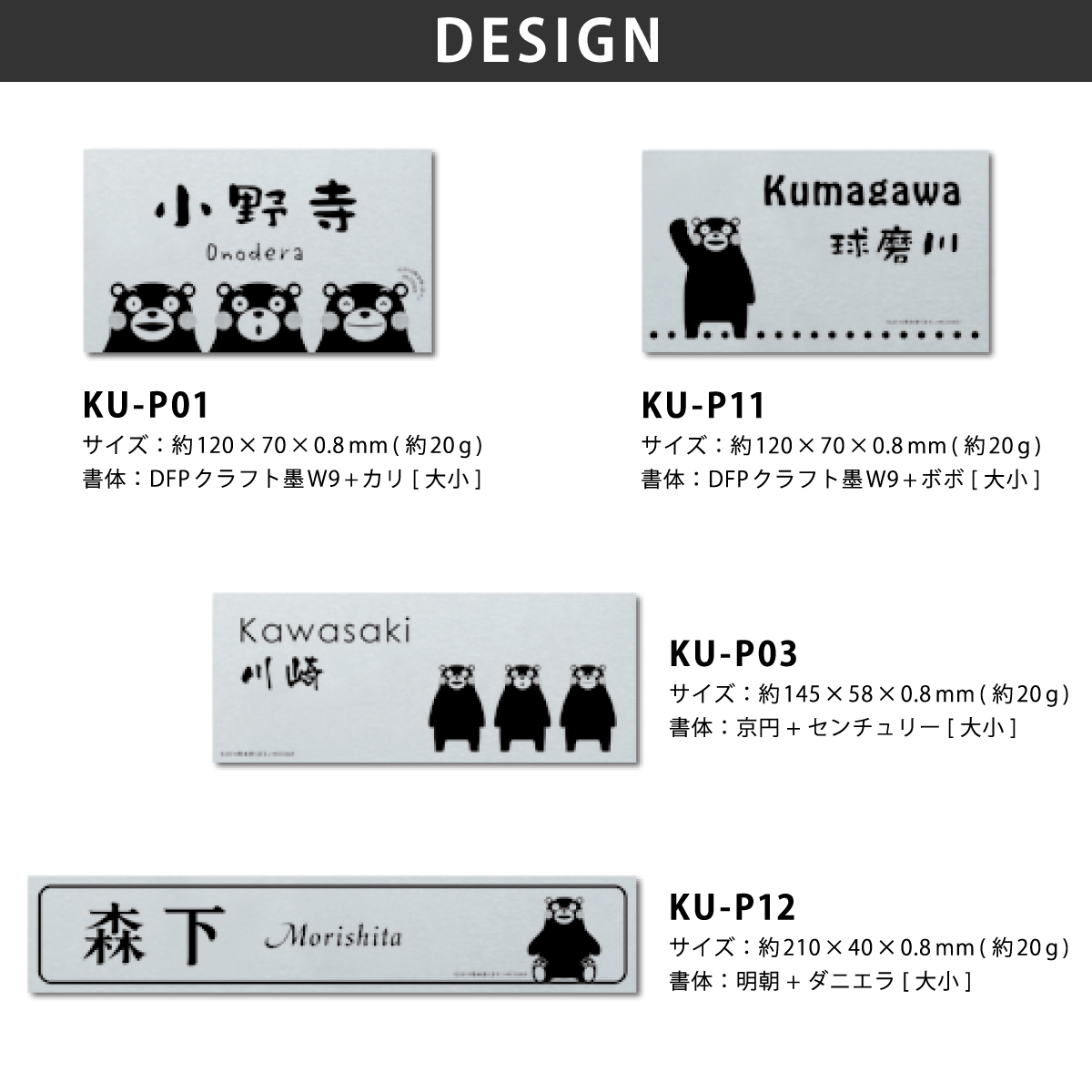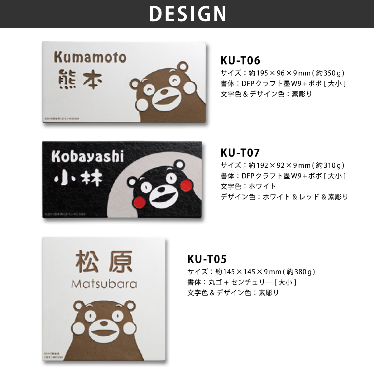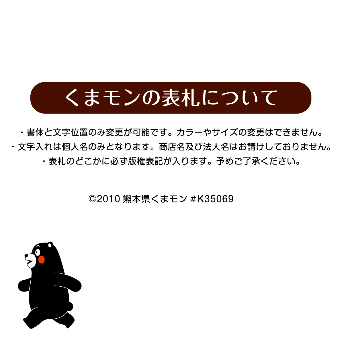 商品詳細 | 人気のくまモンが表札になりました。アクリル、アルミ板プレート、タイル、ミカゲ石の4種類からお選びください。 |